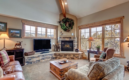 Enjoy the convenience of this wonderful ski-in/out Trails End property. Access the Quicksilver lift and Peak 9 base, just steps out your back door. Main Street Breckenridge is just two blocks away. This unit features new furniture with a rustic mountain theme. Guests enjoy the new 55" inch flat screen TV and flat screen TV in the bedroom as well. B