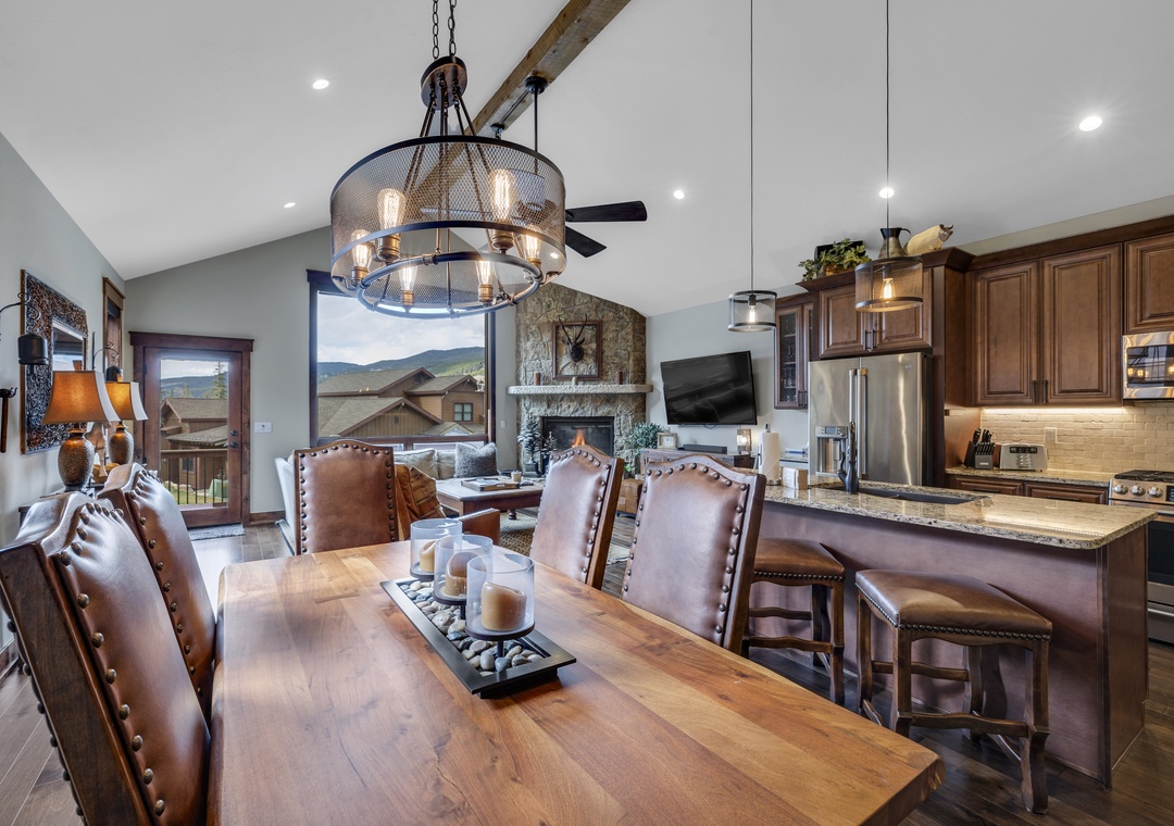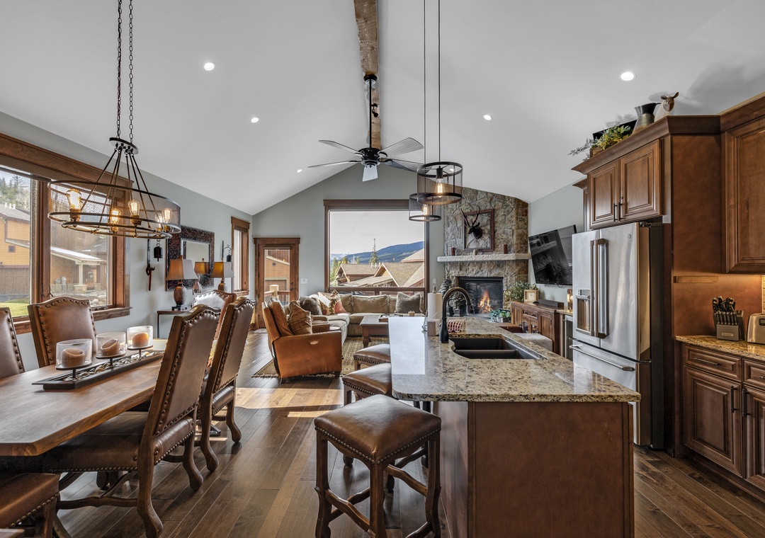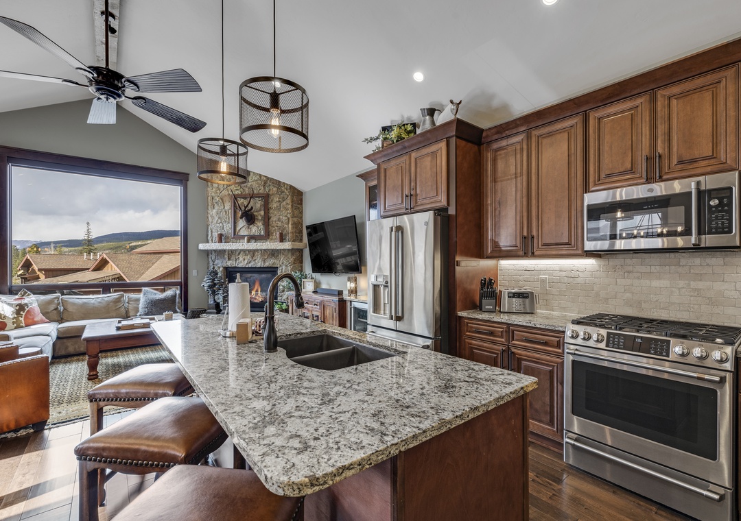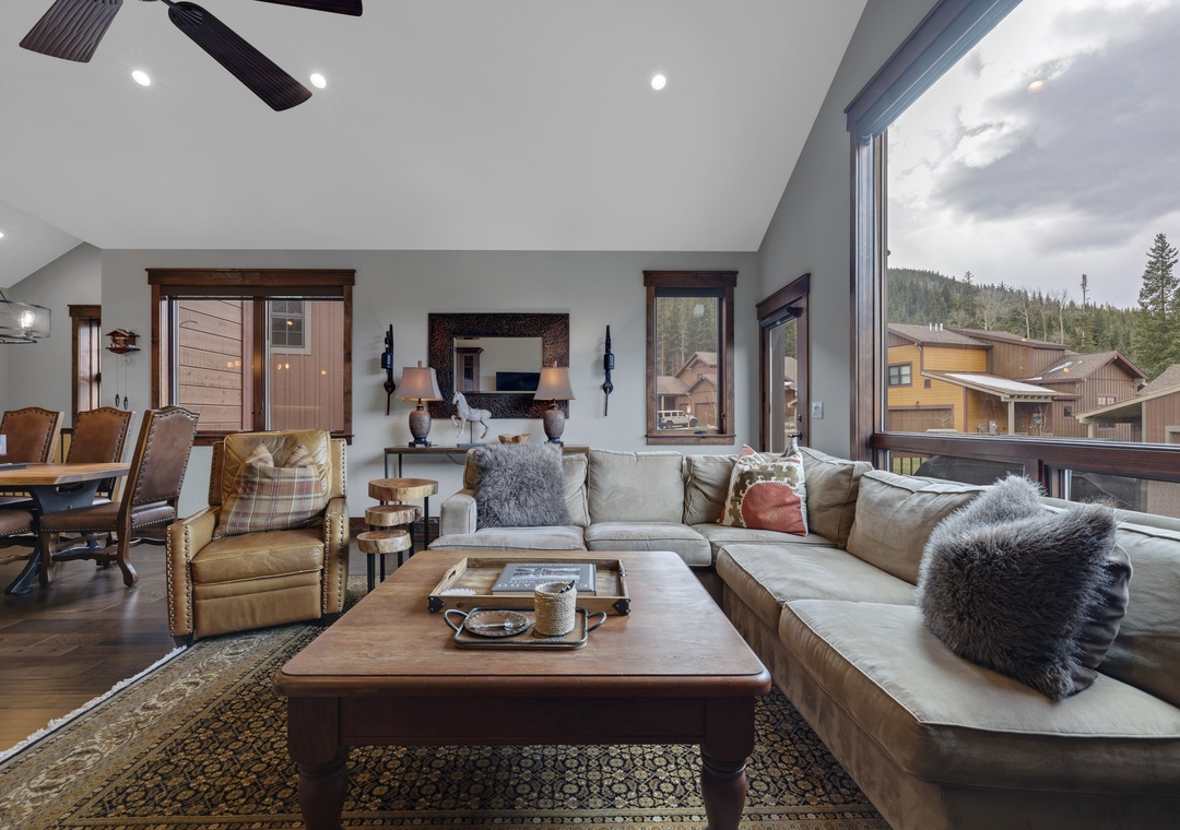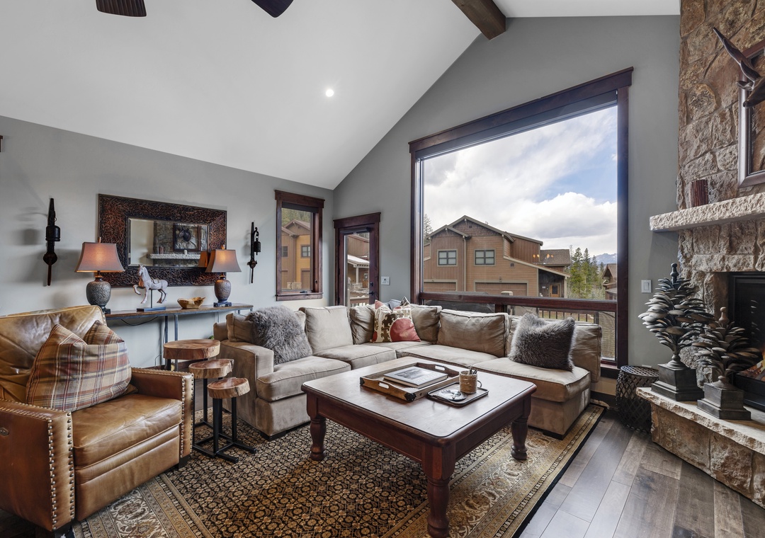 Nestled in Keystone’s desirable Alders neighborhood, this townhome offers the perfect blend of luxury, comfort, and mountain charm. This beautifully appointed retreat features an open-concept living area with vaulted ceilings, a stone gas fireplace, and plush furnishings that invite you to relax after a day of adventure. The fully equipped kitchen boasts stainless steel appliances, all the essentials for home-cooked meals and a large center island ideal for entertaining. On the lower level, the family can gather for movie night on the lush leather sectional around the 65" Smart TV. Throughout the home, large windows frame stunning alpine views, while the private deck out back, furnished with outdoor seating and heaters, provides a serene escape surrounded by pine trees. Every detail has been thoughtfully designed for comfort—from the warm mountain-inspired décor to the in-unit laundry and spacious bedrooms perfect for families or groups.