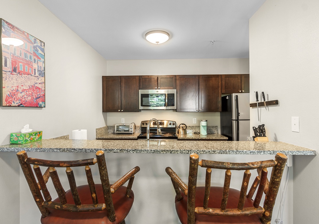 Reason #3: Cozy mountain décor and fully equipped kitchen