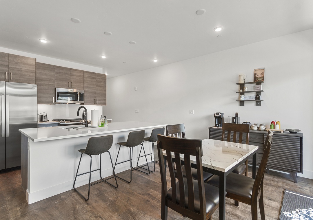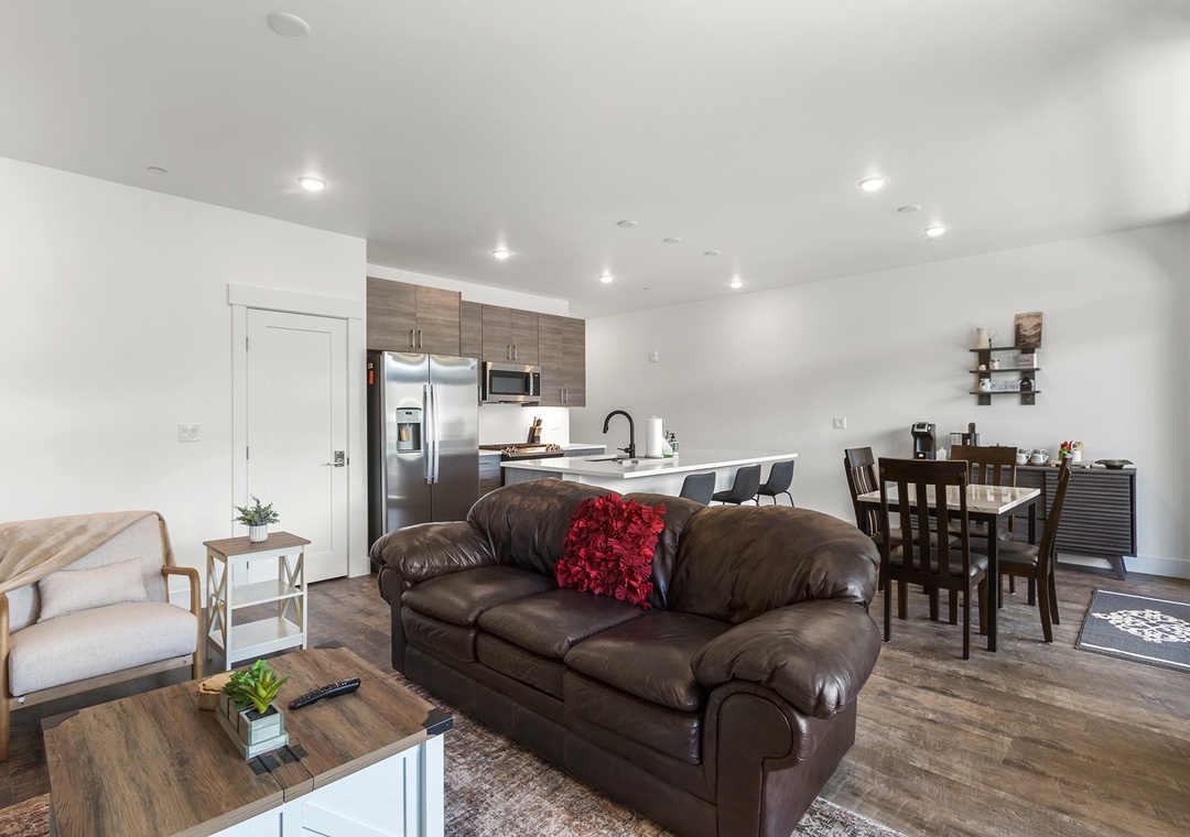 Escape to Apres Shore C22 — a newly built mountain retreat in the heart of Silverthorne, Colorado. This thoughtfully designed two-bedroom, two-bath condo features a stylish open-concept living space with modern furnishings and sleek décor, creating the perfect place to relax after a day of mountain adventure. The gourmet kitchen is fully equipped with stainless steel appliances and everything you need to prepare meals with ease. Each bedroom provides a restful haven, including a primary suite with a plush king bed and a second bedroom with a comfortable queen bed. The living room also includes a convenient full-sized Murphy bed for additional sleeping space.