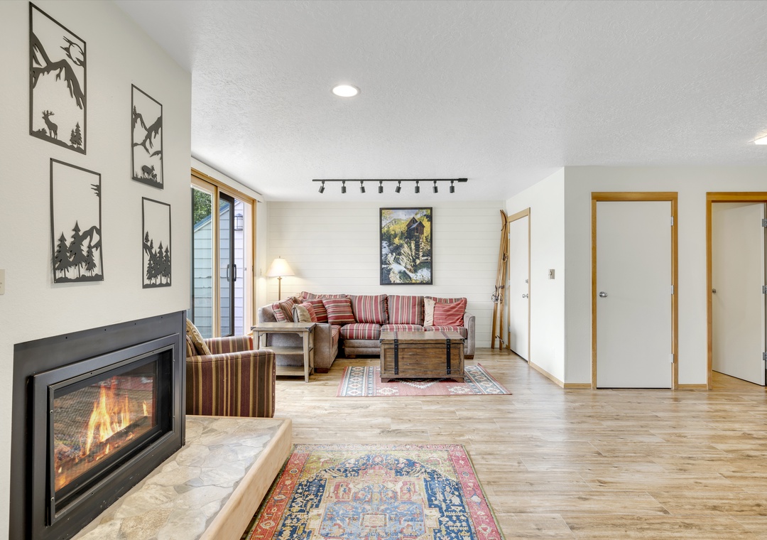 Reason #2: Cozy living area with fireplace and open-concept kitchen