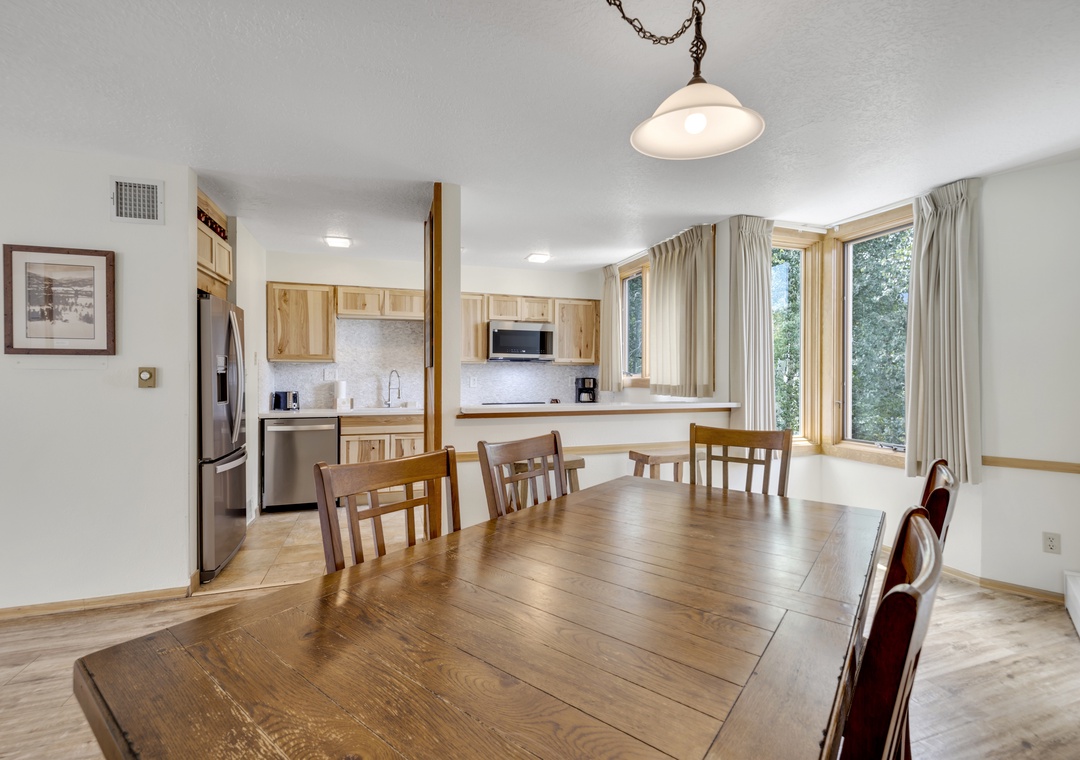 Welcome to Argentine 1517, your ideal mountain retreat in the heart of Keystone. This spacious 3-bedroom, 2.5-bath condo combines mountain charm with modern comfort, featuring large windows that frame lake views and fill the space with natural light. The inviting living room offers a plush sofa and a warm fireplace — perfect for relaxing after a day on the slopes. The open kitchen is fully equipped for preparing everything from quick breakfasts to hearty après-ski meals, while the dining area provides a welcoming space for gathering and sharing stories from your adventures.