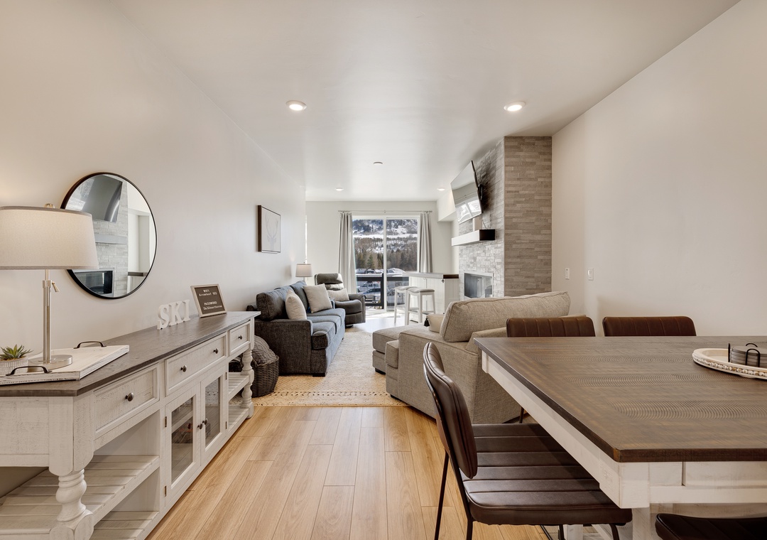 Welcome to Arrowleaf 103 — a stunning, three-story luxury townhouse in the heart of Silverthorne, Colorado. This beautifully designed retreat features modern finishes, stylish décor, and open-concept living spaces ideal for relaxing after a day of adventure. The fully equipped kitchen includes top-of-the-line appliances and plenty of space for preparing and sharing meals, while the inviting living area offers comfortable seating and a pull-out sleeper sofa for extra guests. Large windows fill the space with natural light, creating a warm and welcoming mountain ambiance.