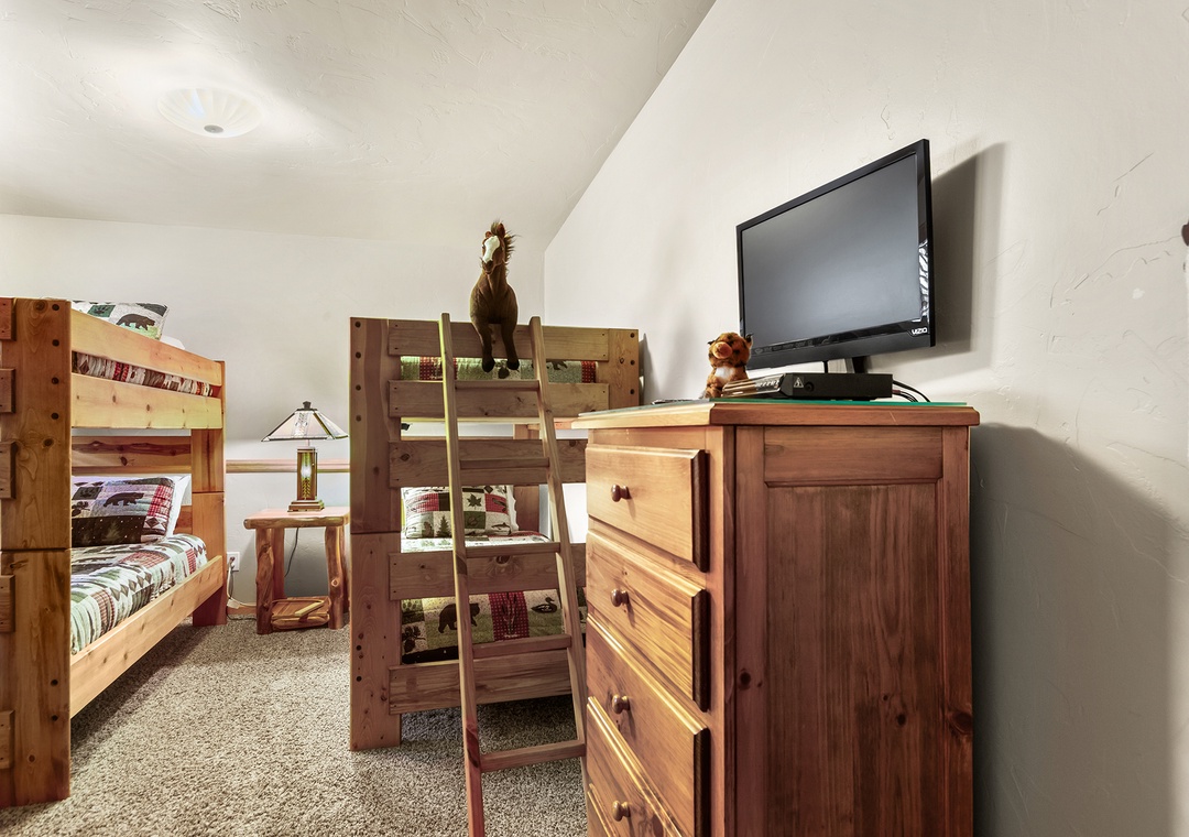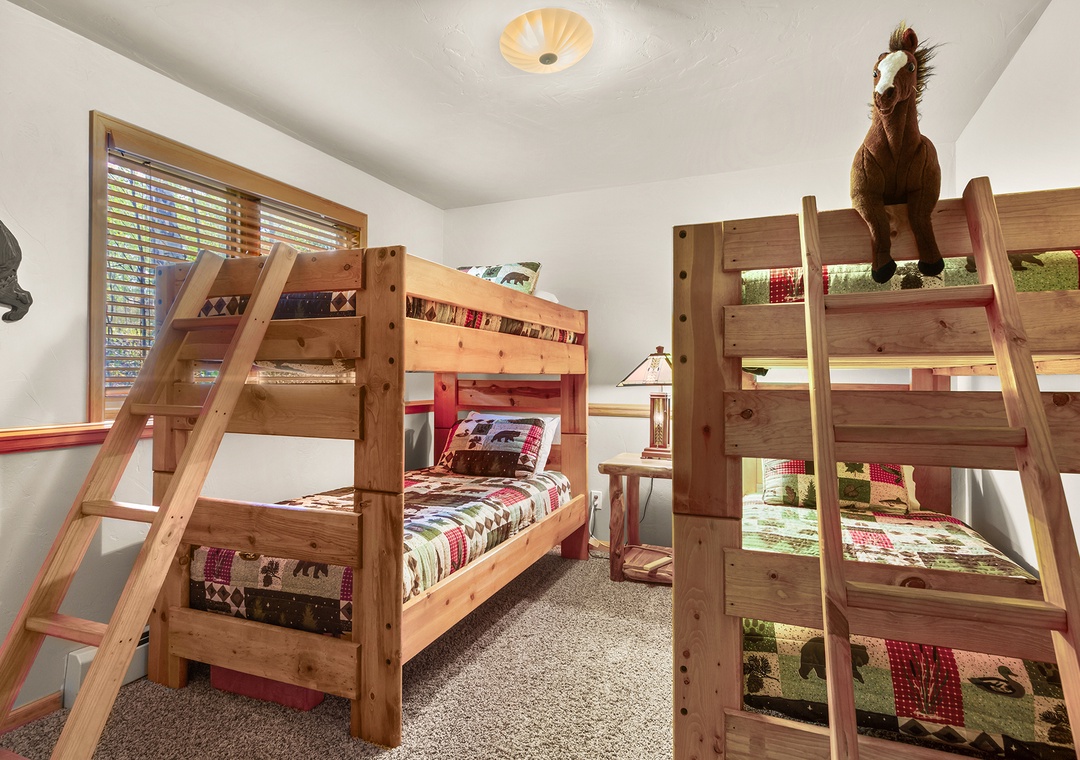 With two king suites offering private baths and smart TVs, plus additional queen and bunk bedrooms, the home accommodates families and groups with ease. The heated garage, level driveway, and outdoor seating area make year-round stays comfortable and convenient.
