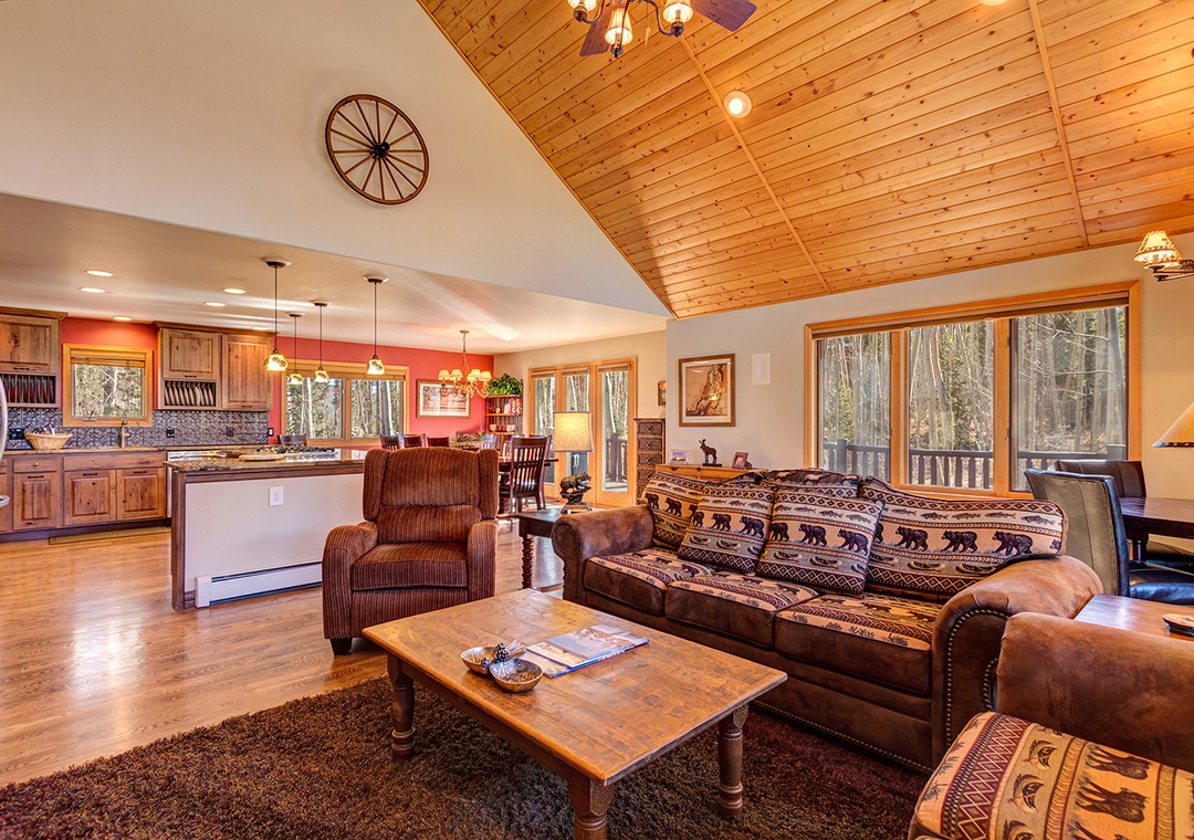 Aspen Lookout offers a classic Breckenridge mountain experience with comfort, space, and natural charm. This beautiful 4-bedroom, 3-bath home features an open-concept living area with a gas fireplace, smart TV, and dining space for ten—perfect for gathering after a day on the slopes. The fully equipped kitchen with granite countertops makes cooking for a crowd effortless, while the covered deck invites guests to relax in the private hot tub and enjoy the surrounding aspen grove, where wildlife often wanders by.