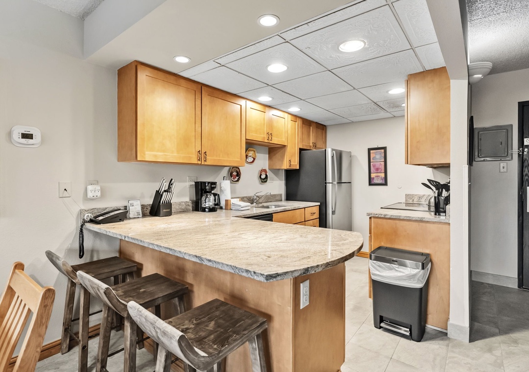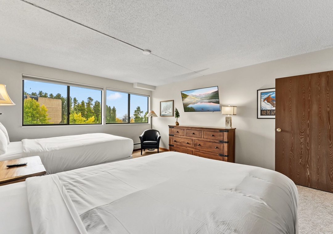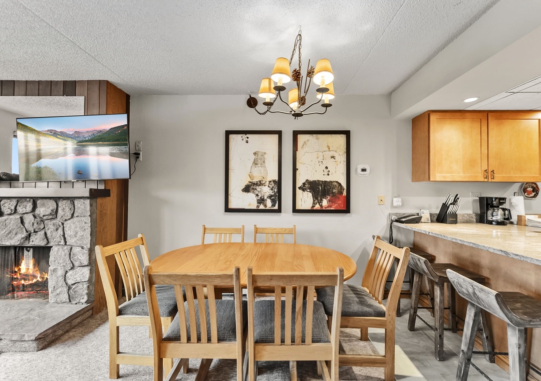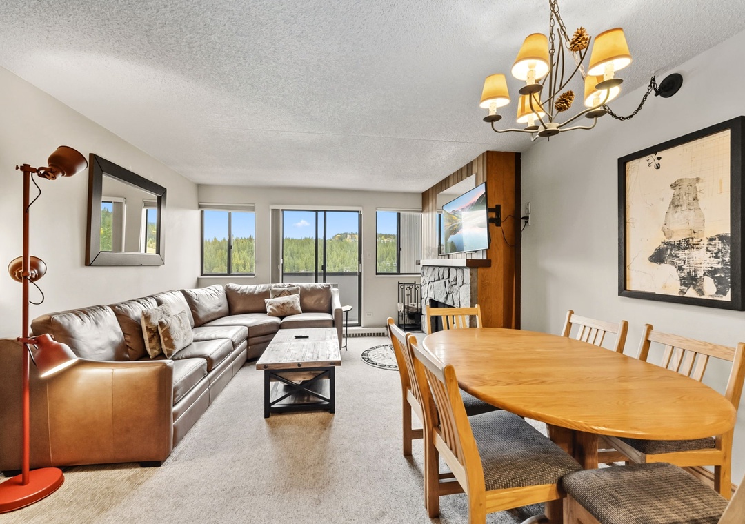This inviting 2-bedroom, 2-bathroom multi-level condo at Beaver Run Resort offers the perfect blend of alpine charm and modern comfort. Enjoy stunning mountain views and southern exposure through large windows that fill the space with natural light. The open living area features a wood-burning fireplace, creating a cozy retreat after a day on the slopes. The fully equipped kitchen with granite countertops and stainless-steel appliances makes it easy to prepare meals and entertain guests.