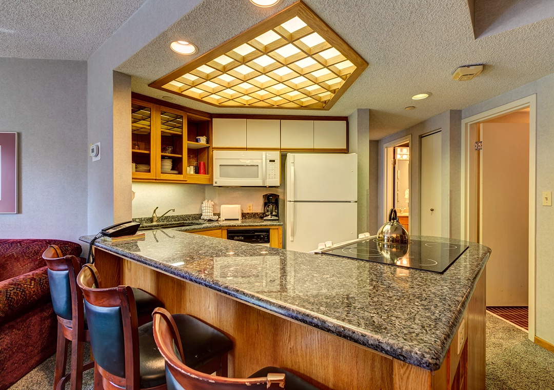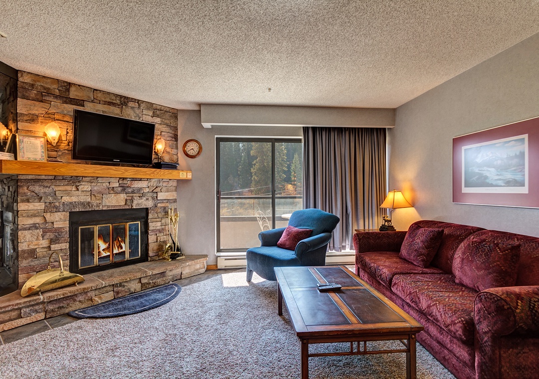 Beaver Run 4237 is a charming one-bedroom, one-bathroom condo offering the perfect combination of comfort, convenience, and mountain ambiance. Located right at the base of Peak 9, this inviting home features a cozy living area with a wood-burning fireplace, two HD flatscreen TVs, and a private balcony overlooking the Beaver Run SuperChair and stunning mountain scenery. The full kitchen with breakfast counter provides everything you need for easy in-home dining, while warm alpine décor creates a welcoming space to unwind after a day outdoors.