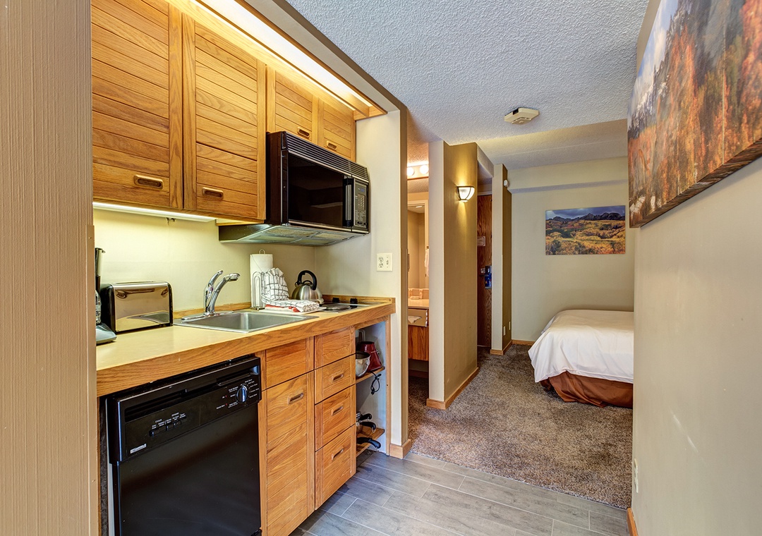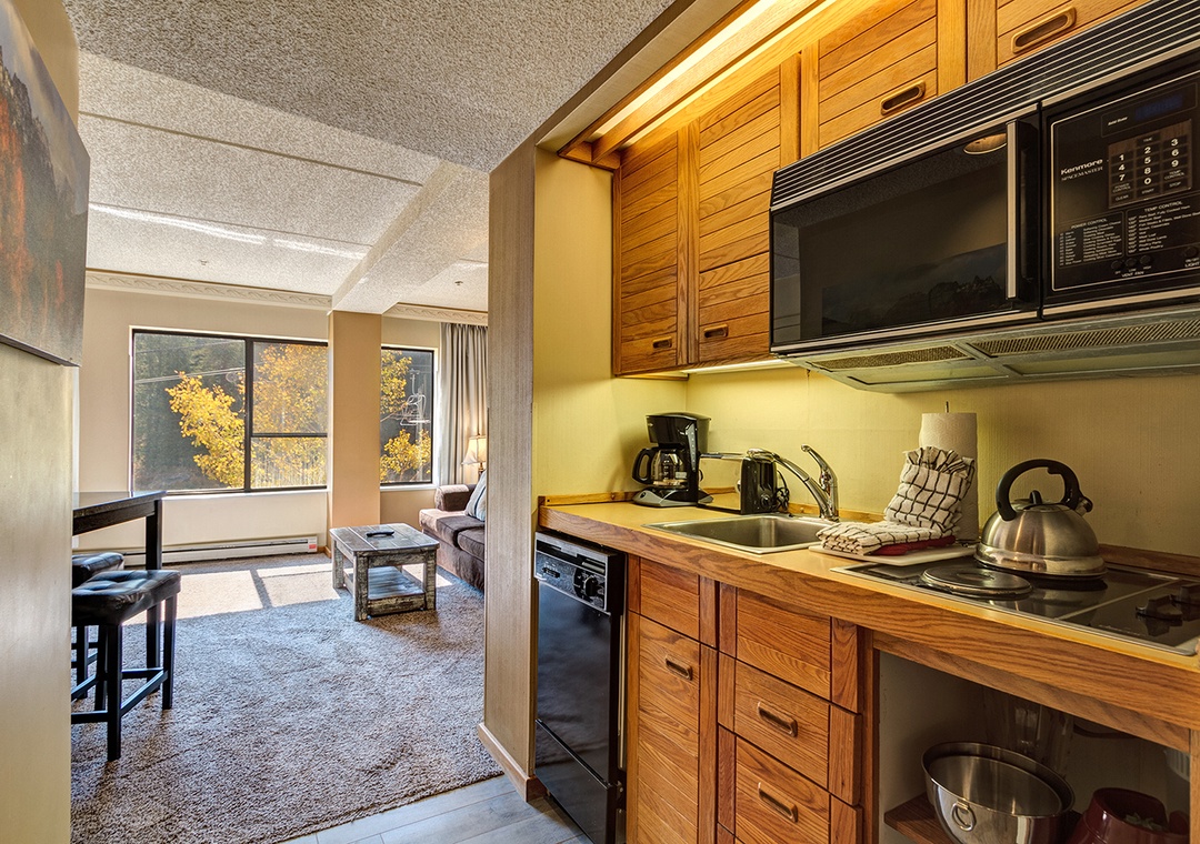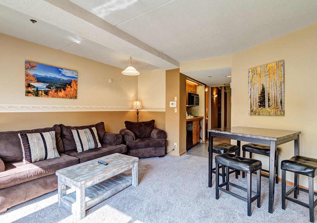 Beaver Run 4332 is a beautifully updated studio suite designed for mountain comfort and convenience. Featuring new hardwood floors, fresh paint, and an upgraded kitchenette, this cozy space combines modern finishes with classic alpine charm. The studio includes a comfortable queen bed and a queen sleeper sofa, accommodating up to four guests. A split-amenity bathroom adds extra privacy, while the inviting living area provides the perfect place to relax after a day on the slopes.