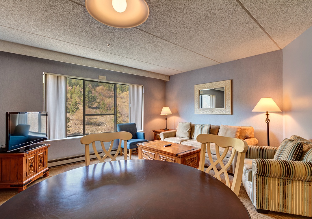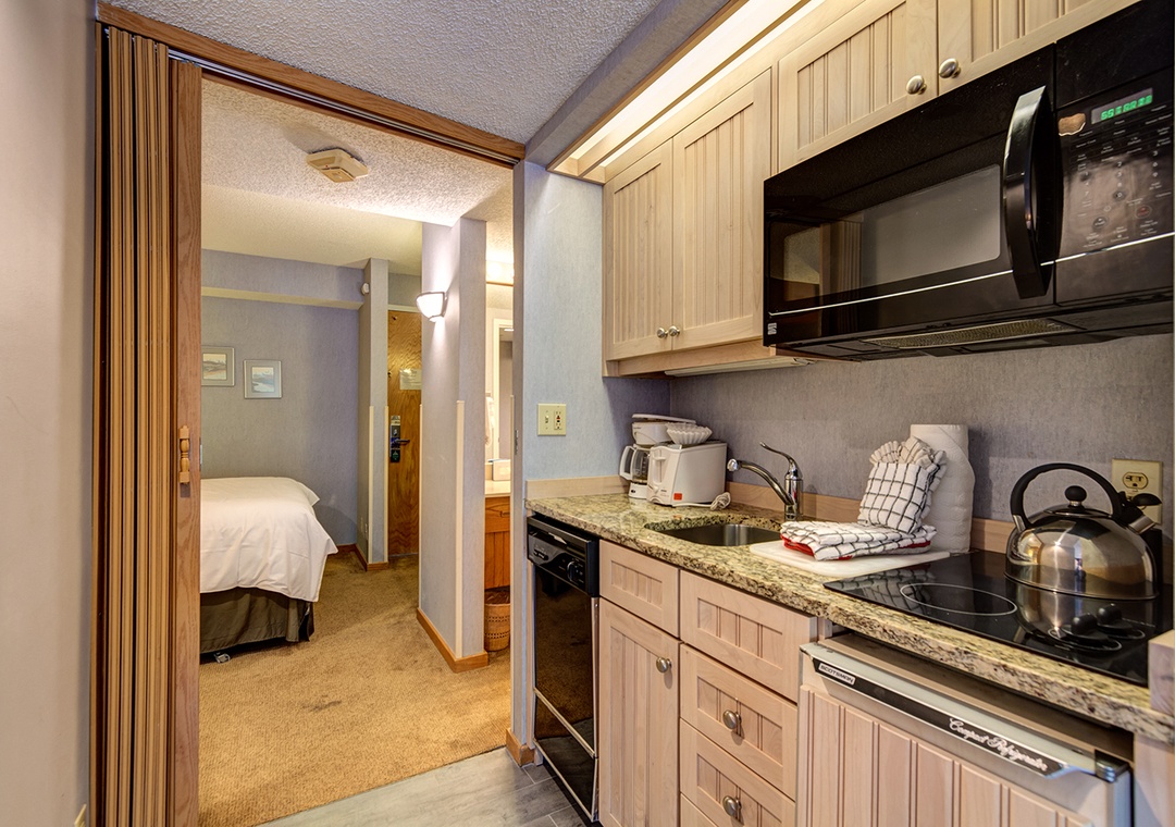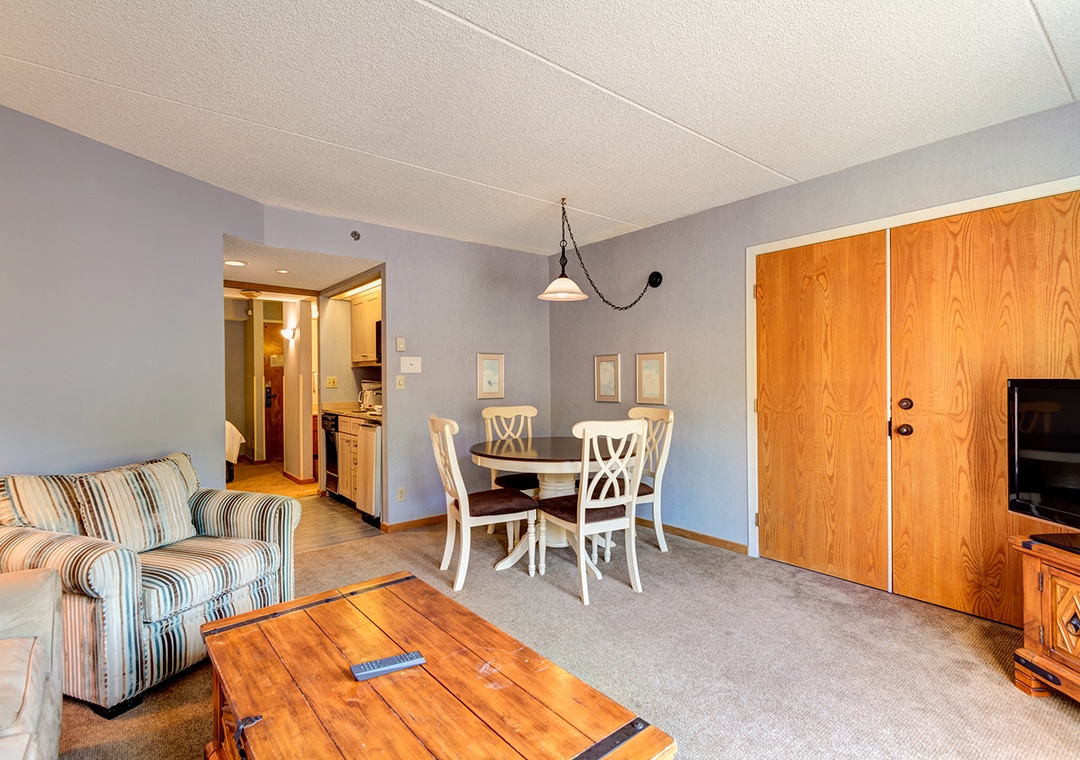 Beaver Run 4412 is a cozy studio suite ideal for couples or small families seeking both comfort and convenience. The unit has been refreshed with a modern kitchenette, two separate sleeping areas, and a split amenity bathroom with a jetted bathtub for added relaxation. Large windows and thoughtful layout make the space feel open and welcoming. Guests can also enjoy a private balcony to take in mountain views and the crisp alpine air.
