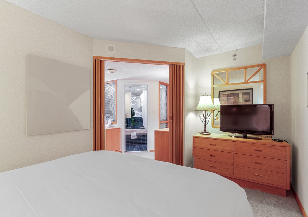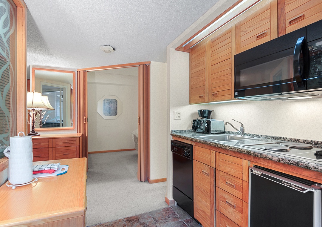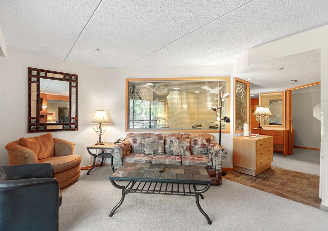 This comfortable Studio Suite at Beaver Run offers a stylish alpine retreat perfect for up to four guests. The suite features a queen bed and a queen sleeper sofa, with a split amenity bathroom and jetted bathtub for added privacy and comfort. Guests can enjoy the convenience of a kitchenette, hardwood flooring, and a well-appointed living area, ideal for relaxing after a day on the slopes. A private balcony provides a space to enjoy the mountain air and views.