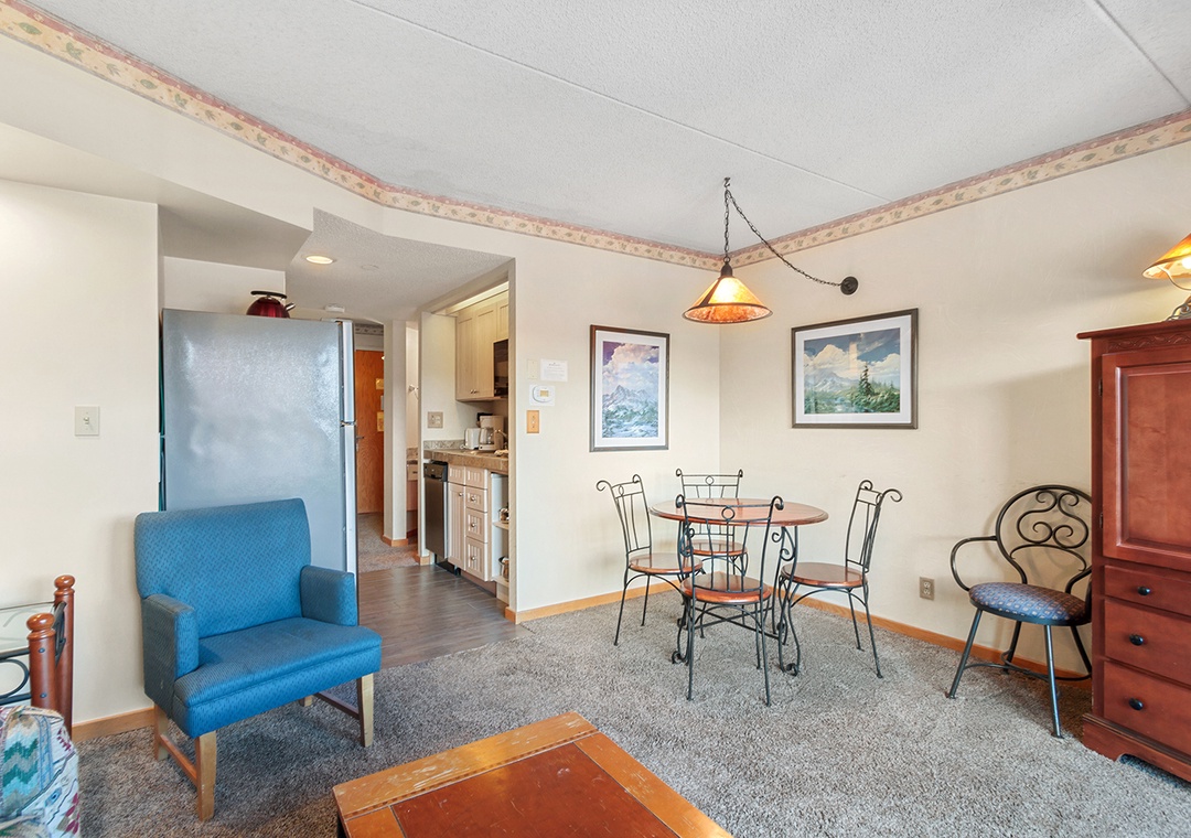 Located at the base of Peak 9, this studio is within walking distance to Breckenridge’s shops, restaurants, and year-round outdoor activities, offering a prime location for both winter and summer visits.