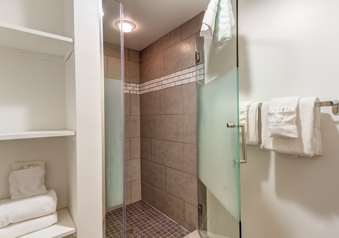 Reason #2: Two separate sleeping areas with king bed, queen sleeper sofa, and walk-in shower