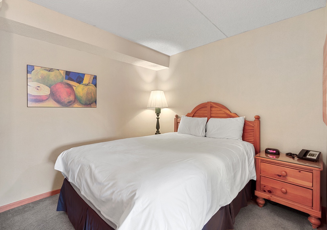 This inviting Studio Suite at Beaver Run offers a comfortable retreat for up to four guests. The suite features a queen bed and a queen sleeper sofa, separated by a split amenity bathroom for added privacy. Guests will appreciate the functional kitchenette, TV with VCR, and a private balcony to enjoy mountain air and scenery. The layout provides two distinct sleeping areas, making it ideal for small families or friends traveling together. Modern decor and thoughtful updates ensure a cozy, welcoming atmosphere for your stay.