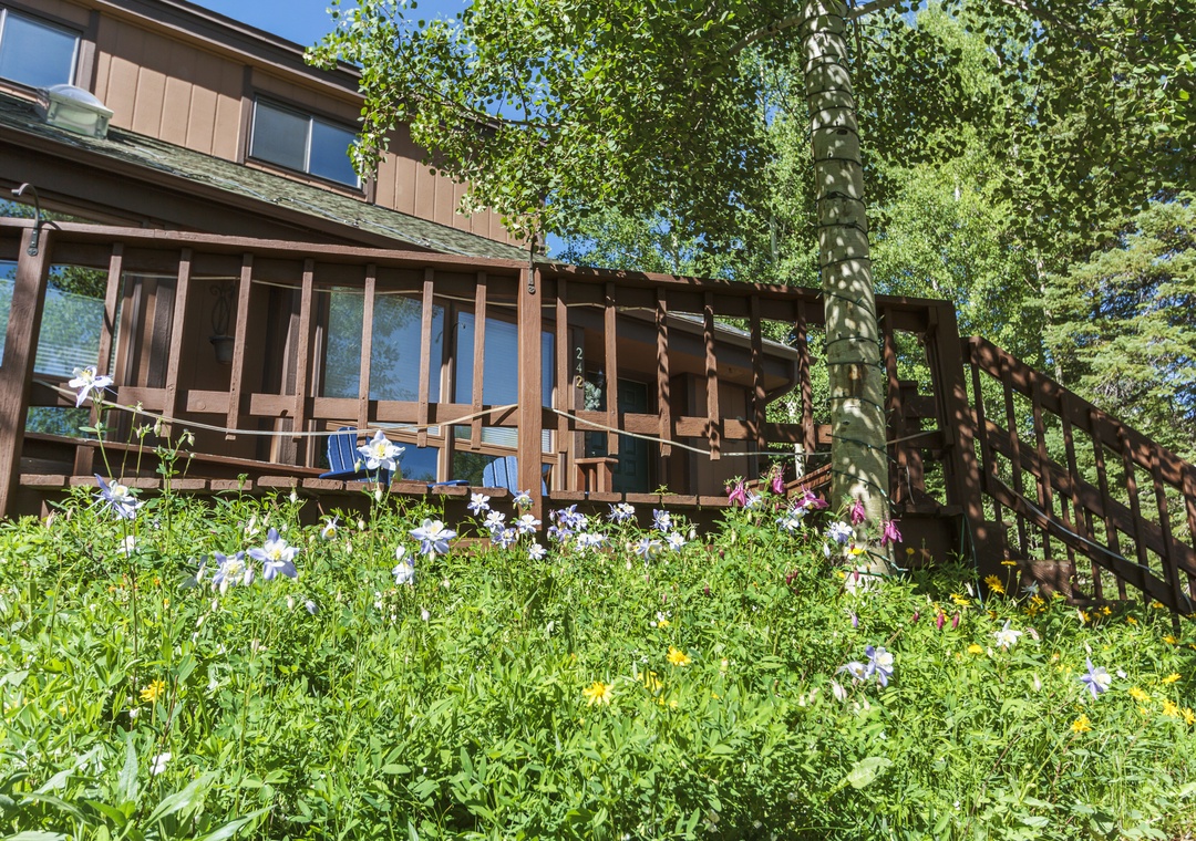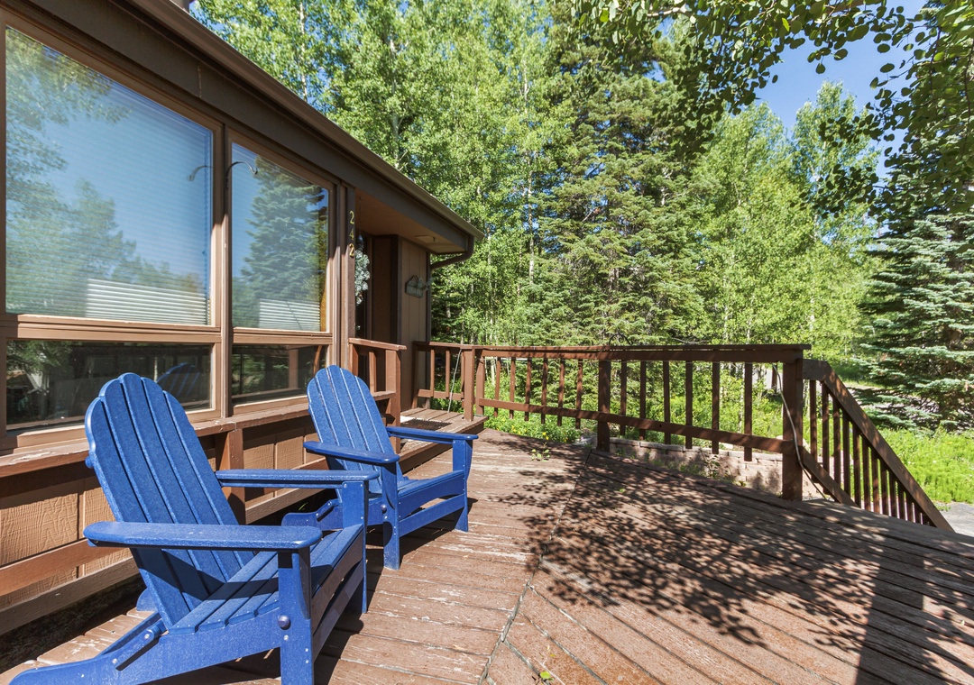 The cozy living room and open floor-plan dining area offer opportunities to relax and connect with loved ones. Other features such as a full kitchen and private washer and dryer will make you feel right at home. The numerous outdoor seating areas will immerse you in the beautiful Colorado mountainside, and gorgeous hiking trails are right in your backyard! This unit is also within walking distance to the Summit Stage Bus stop, providing easy access to Breckenridge ski slopes and the quaint surrounding towns.