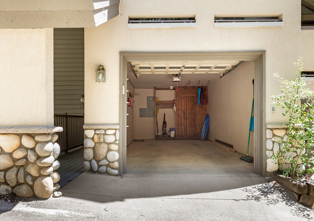 Additional amenities include a heated one-car garage, one outdoor parking spot, full-size washer and dryer, and high-speed Wi-Fi throughout.
