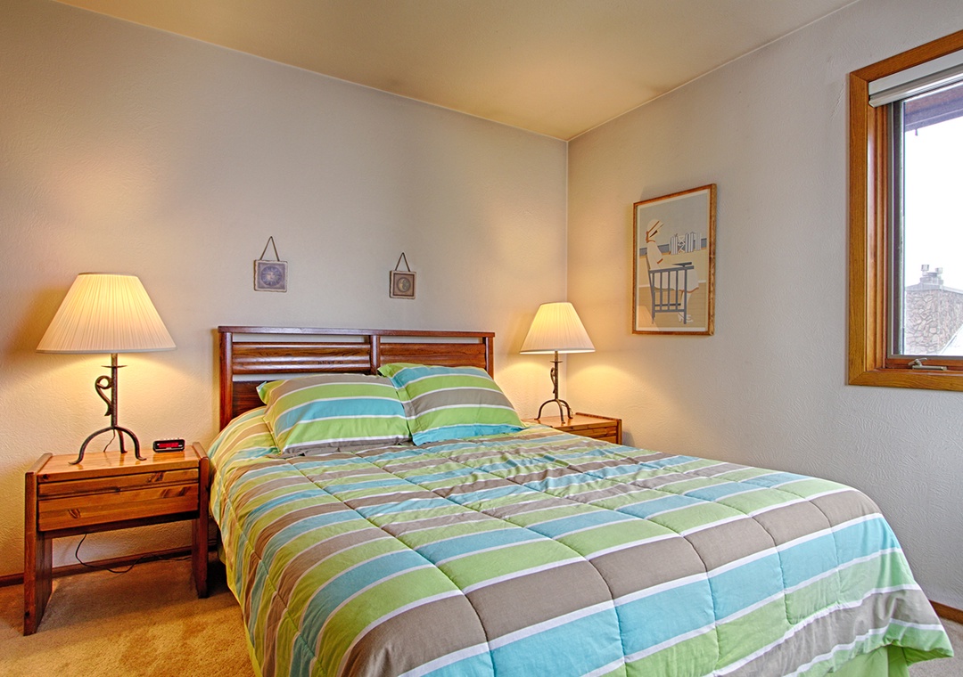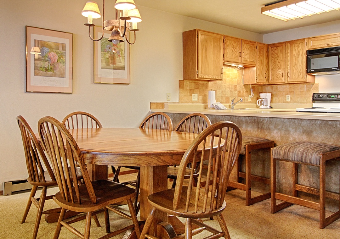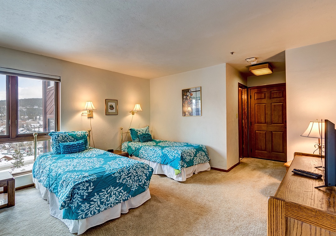 This moderate condo is one of our best values for an in-town two bedroom unit. This beautiful Breckenridge lodging accommodation is located just two blocks off of Main Street and about 250 yards to the base of Peak 9 and the Quicksilver lift. The unit is about 1,200 square feet and happens to be one of our most spacious two bedrooms. The building offers an underground heated garage parking, indoor hot tubs and a steam sauna. Guests will also have use of the Upper Village outdoor heated pool and hot tubs right down the street. There is a rustic wood fireplace with additional wood supplied in the garage.