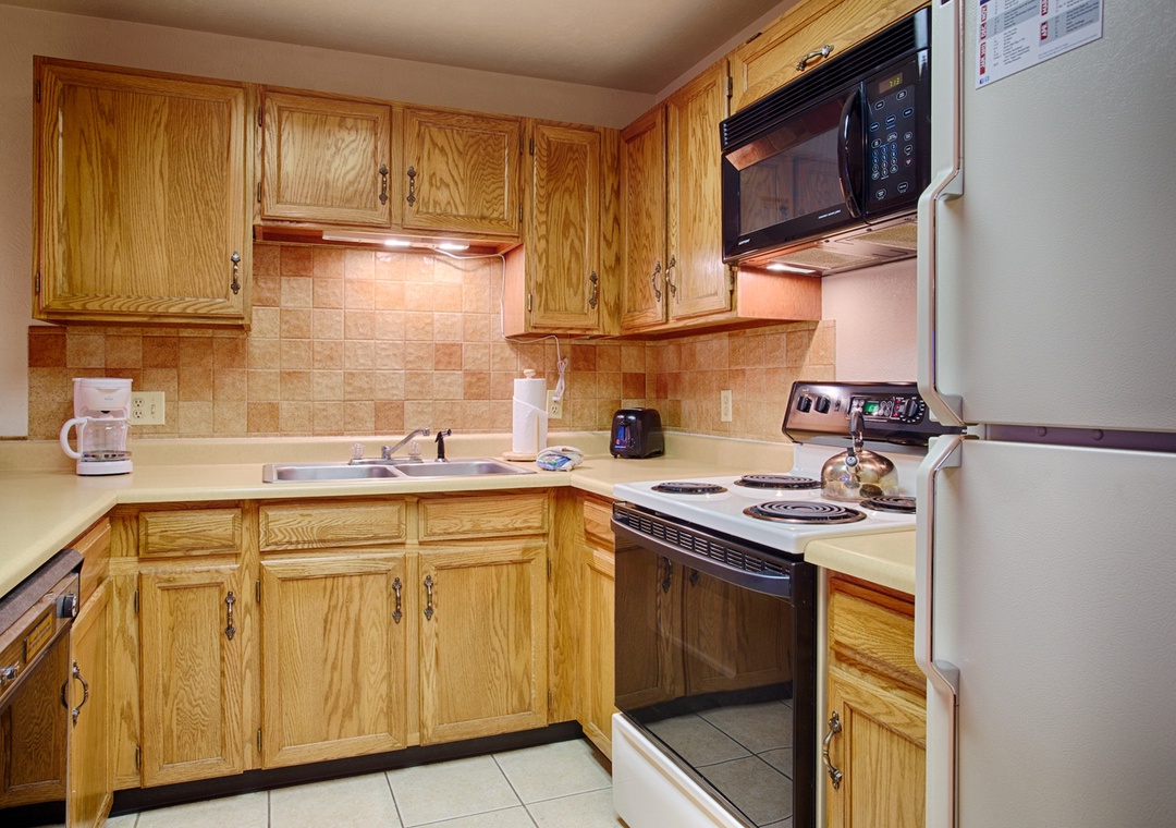 The condo would benefit from some fresh paint, replacement comforters/ blankets and the couch. The recliner chair was the best place to kick your feet up after hiking and relax. We didn’t use the wood burning fireplace, but imagine that would be a real bonus in the cooler months.