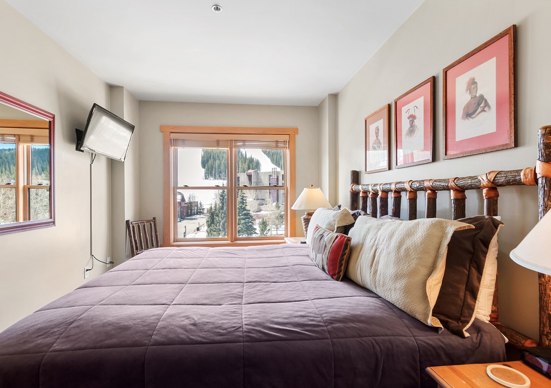 Other amenities include free Wi-Fi, a private balcony with stunning views of Copper Mountain and the Super Bee Lift, access to the sauna, fitness center, pool table, private ski locker, and heated garage parking. You'll have access to the complex's outdoor hot tub, perfect for soaking away your cares under the stars.