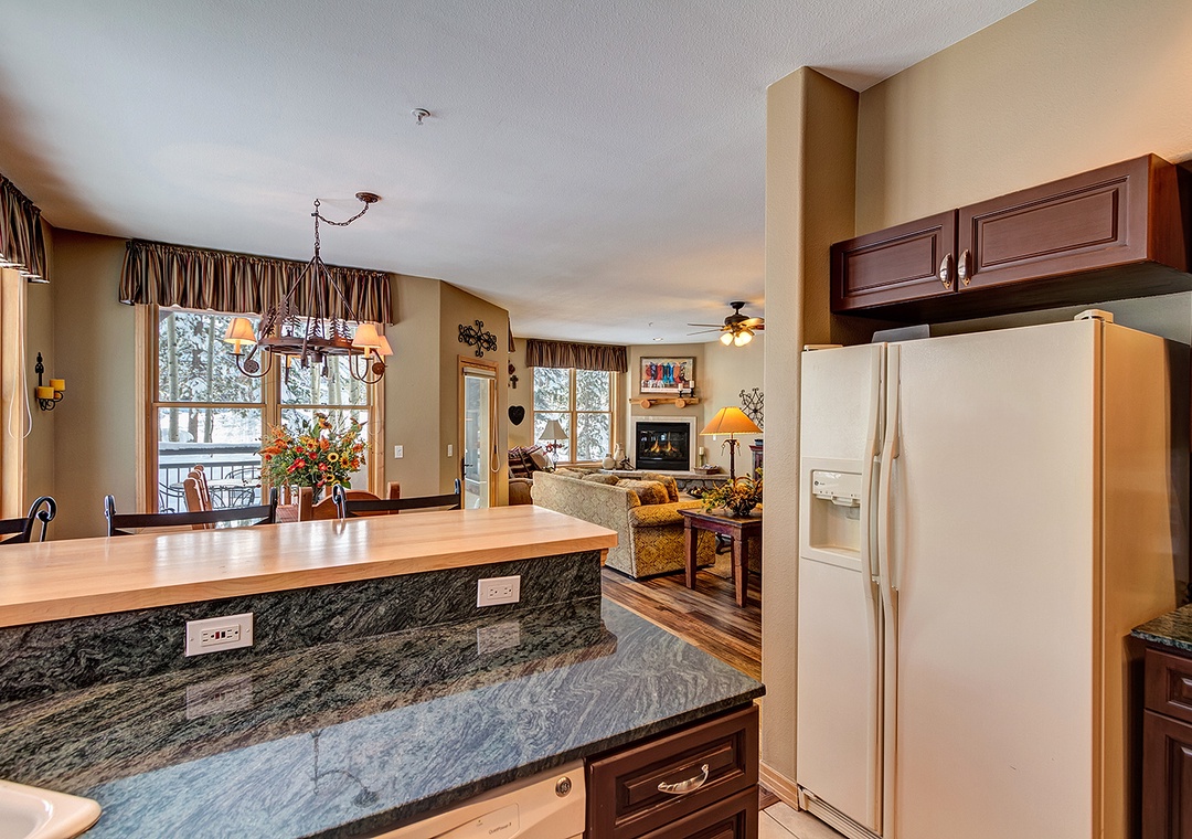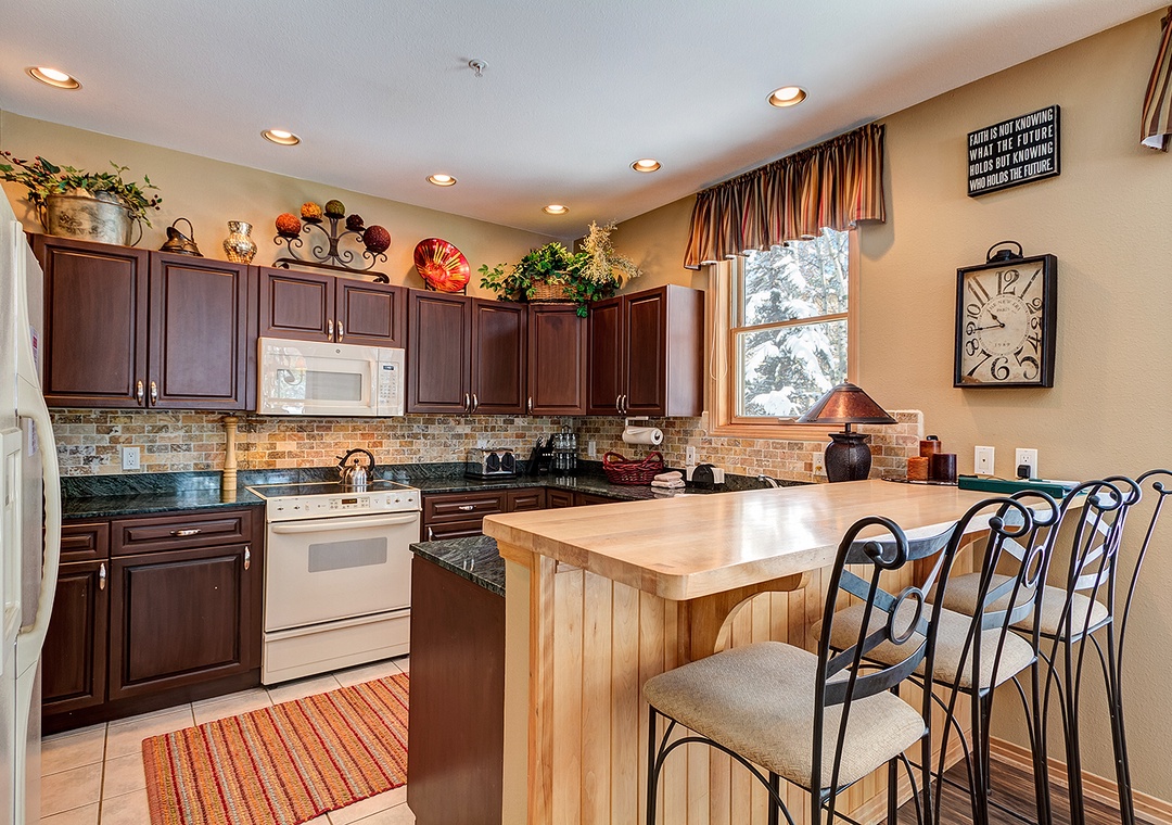 The bright, chef-ready kitchen is fully stocked for everything from Thanksgiving feasts to cozy crockpot stews, and includes plenty of bowls, pans, baking ware, lasagna pan, salad spinner, hot water pot, coffee maker and filters, and a spice rack bursting with flavor. Whether you're planning a ski trip, a summer hike, or a holiday gathering, this mountain condo is your home base for adventure and relaxation. All guests at the Corral enjoy access to the 14 person outdoor hot tub on site, fitness room, steam room, and game room with pool table, foosball, air hockey, 55 inch TV, and lounge area. Book your stay and experience mountain living at its finest!