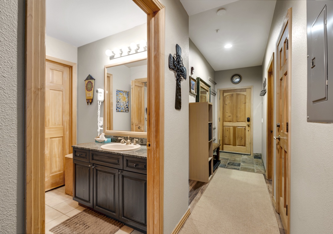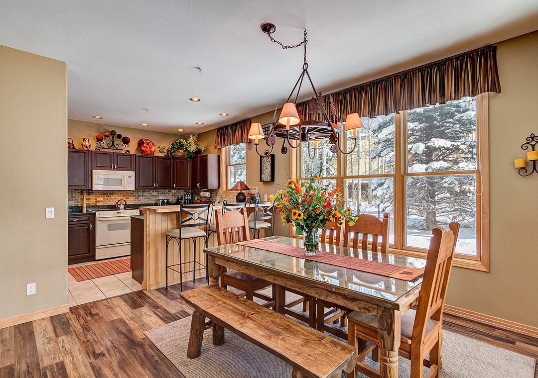 Easy to access ground level accommodations. Garage parking for one, with good height, able to fit a Subaru Forrester with a roof box attached. Additional parking for one vehicle outside of the garage. Quick walk to/from peak 9 base and Main Street.- Posted: 3/8/2025