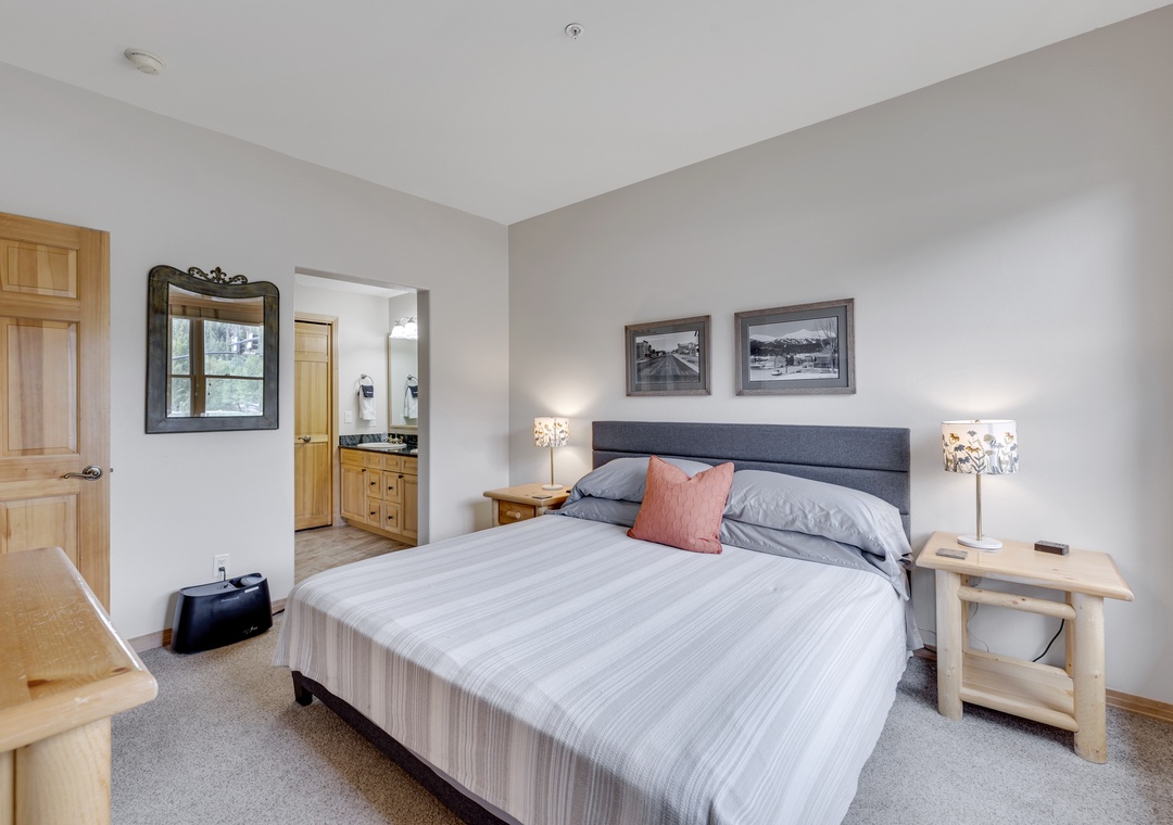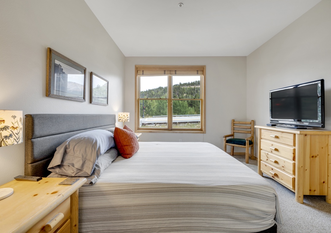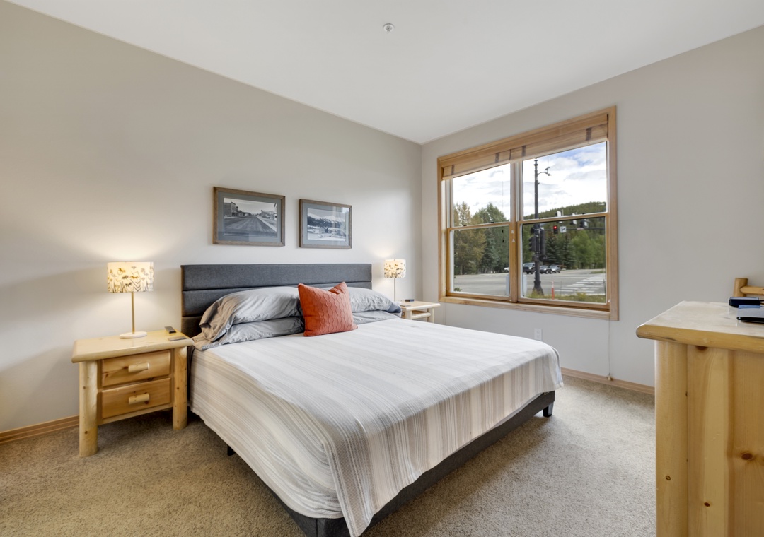 Enjoy breathtaking mountain views from both sides of the condo, including panoramic vistas of the Tenmile Range right from the living room. Thoughtfully updated, the space features modern mountain décor, gorgeous hardwood floors, and brand-new mattresses in every bedroom for a restful night’s sleep.