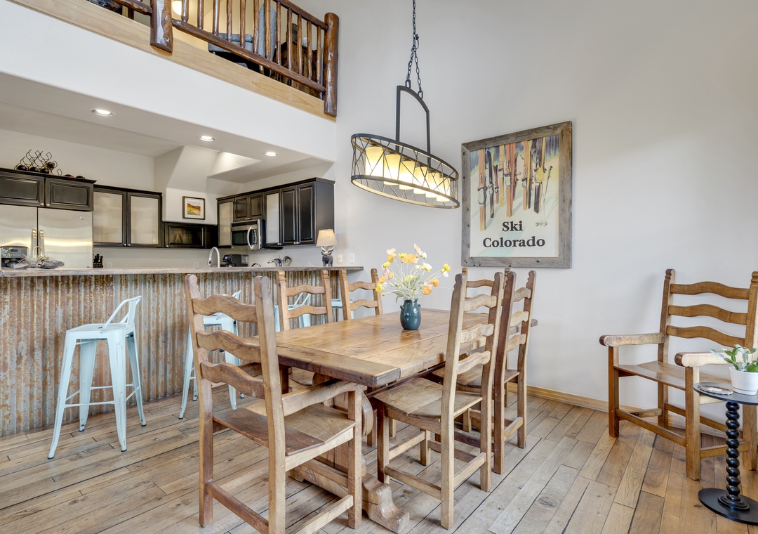 Located at the south end of Main Street within walking distance of the base of Peak 9, this Breckenridge condo is also located on the free shuttle route and just a 10 minute walk to the Quicksilver chairlift.