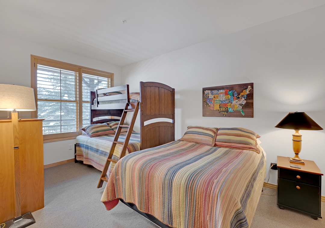 Great location, great amenities and plenty of room for a 2BR; including a very roomy living room. The mattress on the standalone standard bed in the smaller room could use an update/upgrade. The couple using that room wound up sleeping on the standard bed connected to the bunk as they indicated that mattress was much better. The check-in process is a bit 1990’s and would be much more guest-friendly with keyless entry instead of having to stop at the office on Main St., which can be incredibly busy and difficult to get in/out. The kitchen is great - it is well equipped with just about any pot/pan/utensils/appliance’s you could possibly need/want for your stay. The website said there would be no hairdryer (a bit unusual) but there was one under the sink when we arrived so either someone forgot it or they changed there mind and decided to provide one - no biggie but wife was not thrilled about having packed one for the trip. The ski lockers are not overly convenient as they are in the basement - not life and death but worth mentioning the logistics for clarity. Would definitely stay here again - has a really good view of the slopes on 9/10 and a short walk to the free shuttle that will take you to Peak 9 in under 10 minutes. Pretty easy check-out as well - except for having to return the keys to the office.- Reviewed On: 3/27/2022
