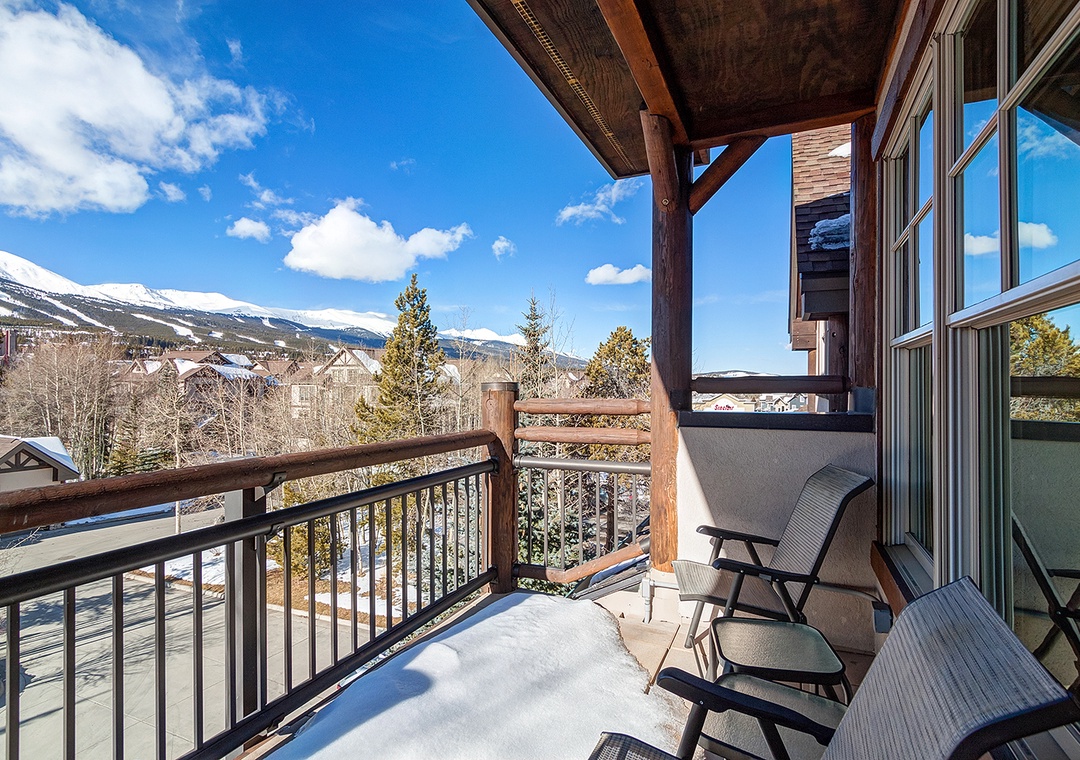 This 3 bedroom, 3 bathroom penthouse condo at The Corral is located on the south end of Main Street within walking distance of the base of Peak 9 for easy ski and lift access, and is a quick walk downtown for shopping and dining. This condo includes custom hardwood throughout the main floor, beautiful furnishings, stainless steel appliances in the kitchen, and a 1-car private garage. In the summer, take in the beautiful views of the Breckenridge Ski Resort, or in the winter, cozy up by the modern brick fireplace in the living area.