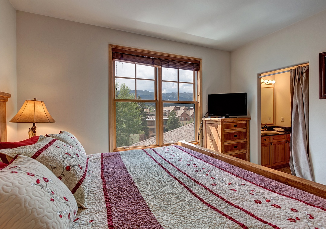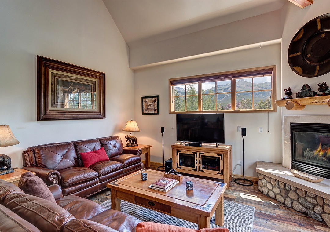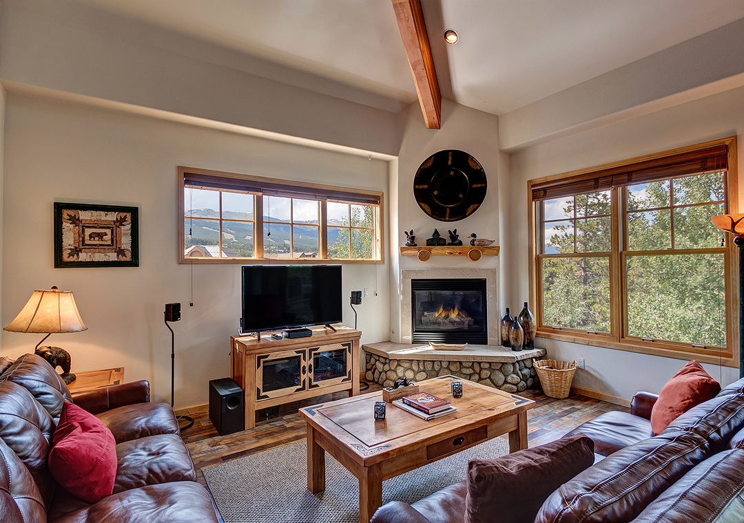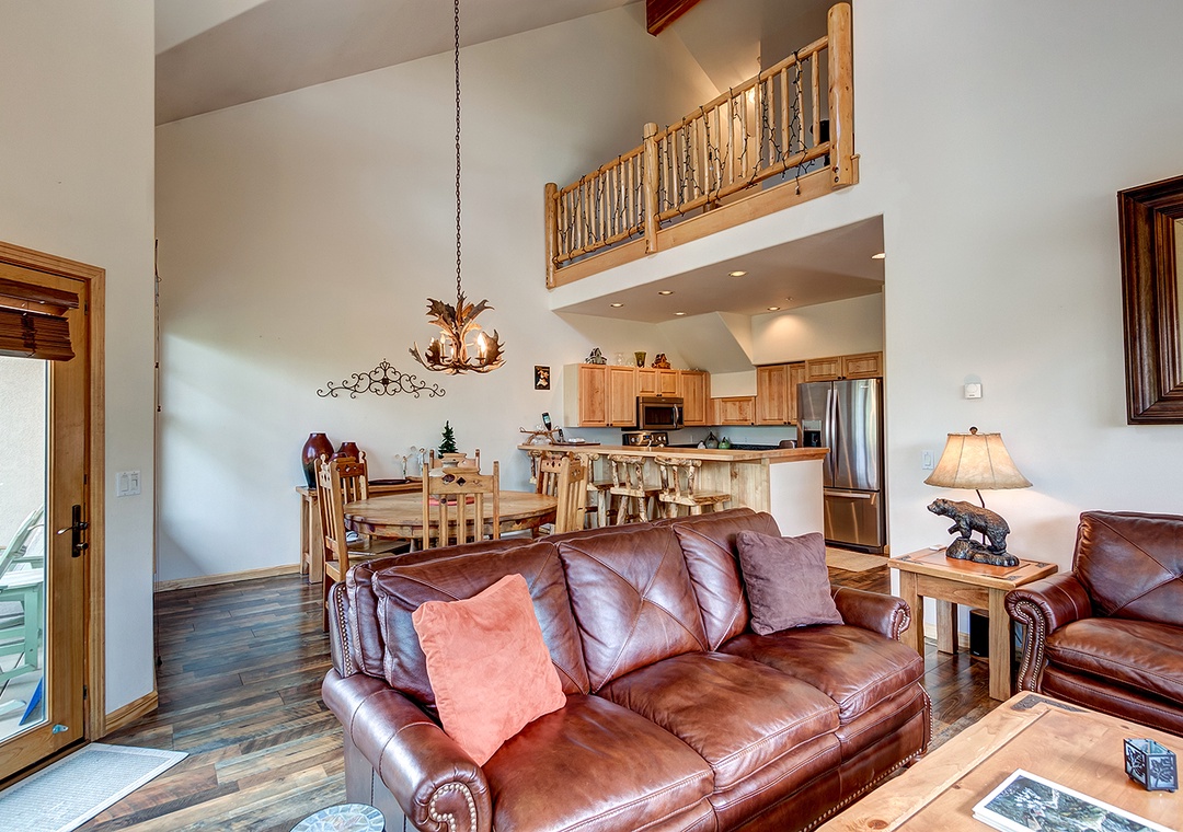 Located at the south end of Main Street within walking distance of the base of Peak 9, this Breckenridge condo is located on the free shuttle route, it is also just a 12 minute walk to the Quicksilver chairlift. This is a lovely 3 bedroom 3 bathroom condo, which has vaulted ceilings and additional loft space, with a quiet private patio and views towards the mountains and down the valley.