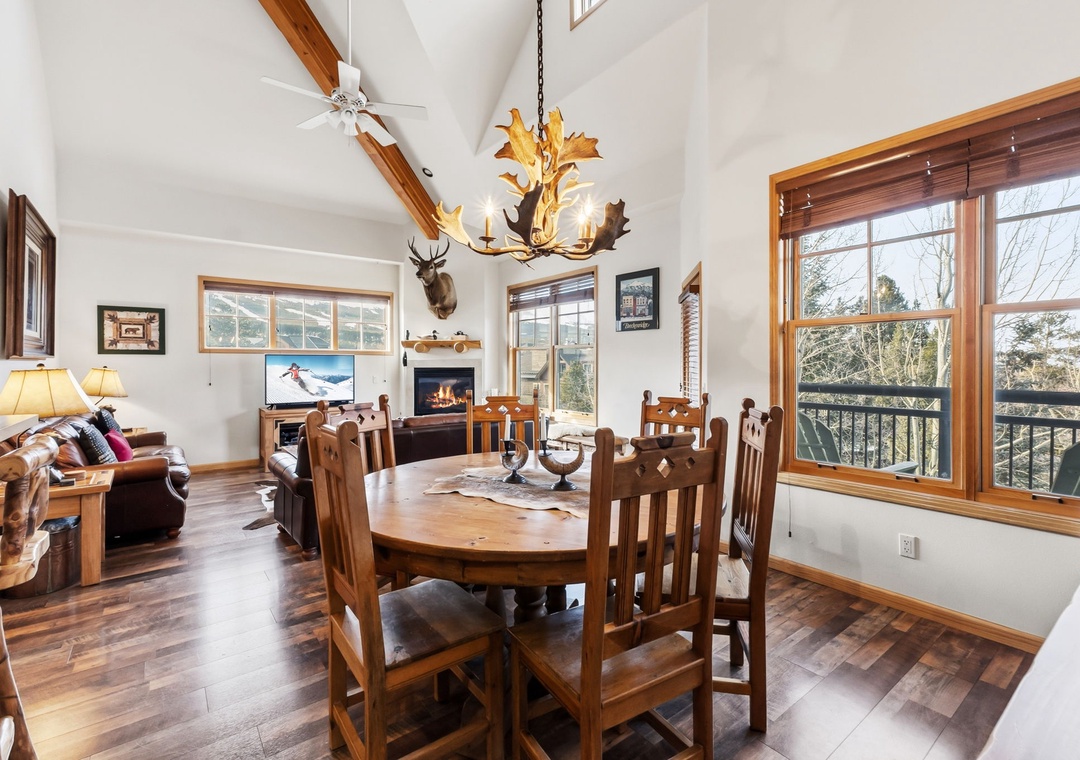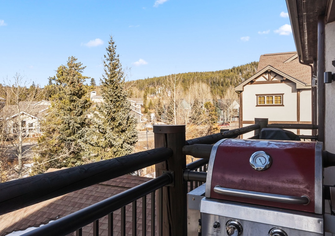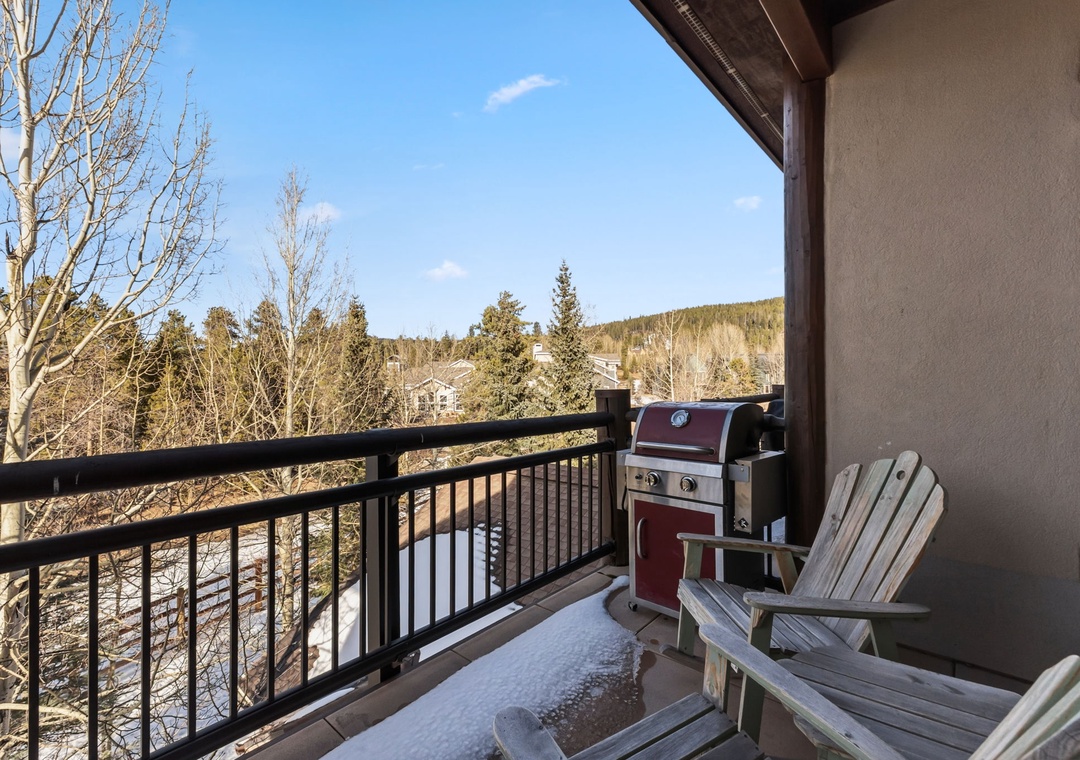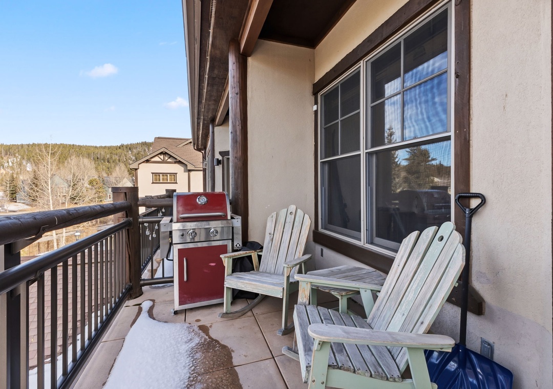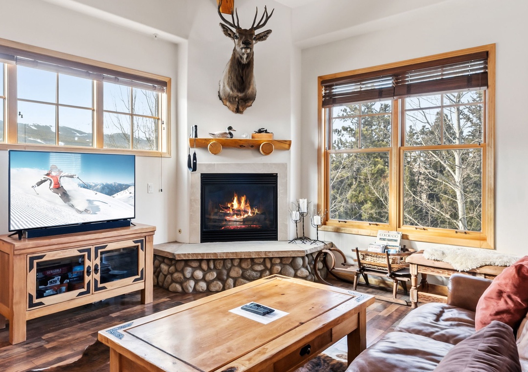 This charming mountain retreat features a cozy living area with a gas fireplace, a fully equipped kitchen, and comfortable furnishings, all designed for relaxation after a day exploring Breckenridge. Enjoy modern appliances and an in-unit washer and dryer for your convenience. The private balcony offers breathtaking views of the surrounding mountains, providing a perfect spot to unwind.