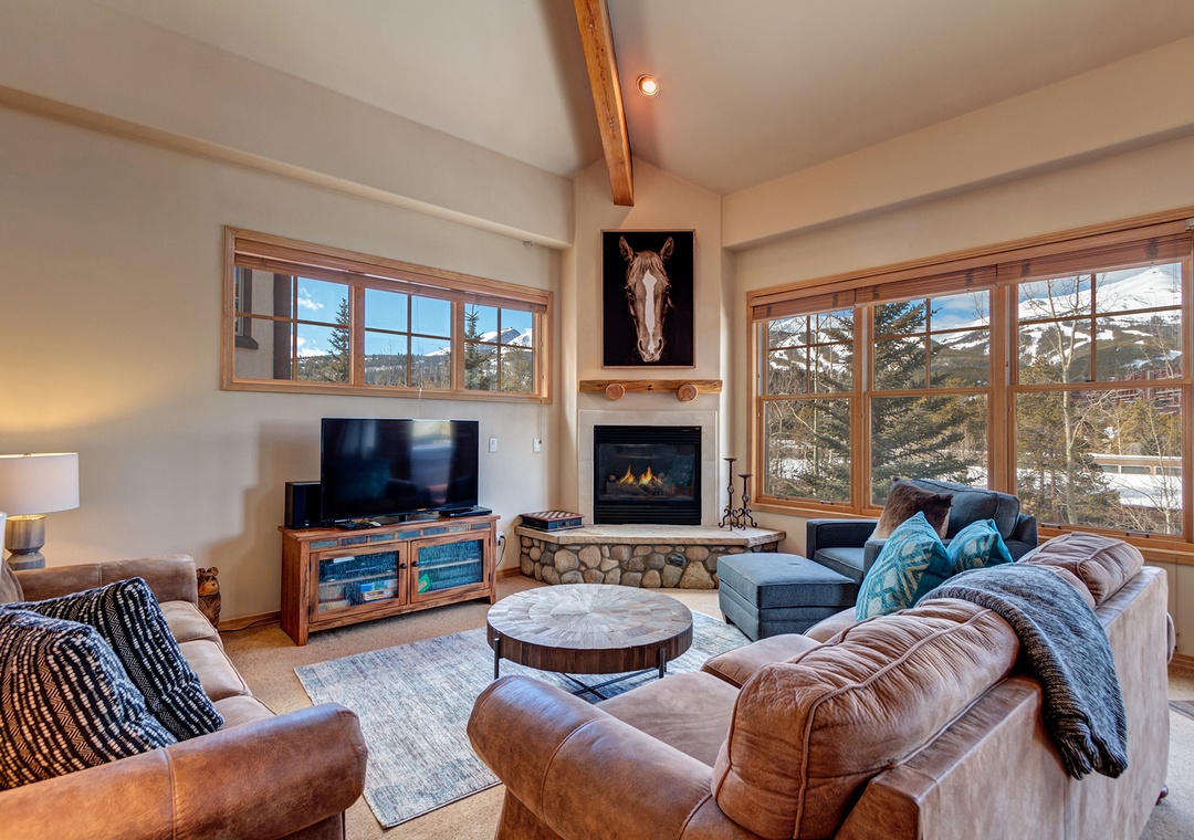 Located at the south end of Main Street within walking distance of the base of Peak 9, this Breckenridge condo is located on the free shuttle route, it is also just a 12 minute walk to the Quicksilver chairlift. This is a great ski area facing 3 bedroom, 3 bathroom condo, with a private hot tub, and a loft.