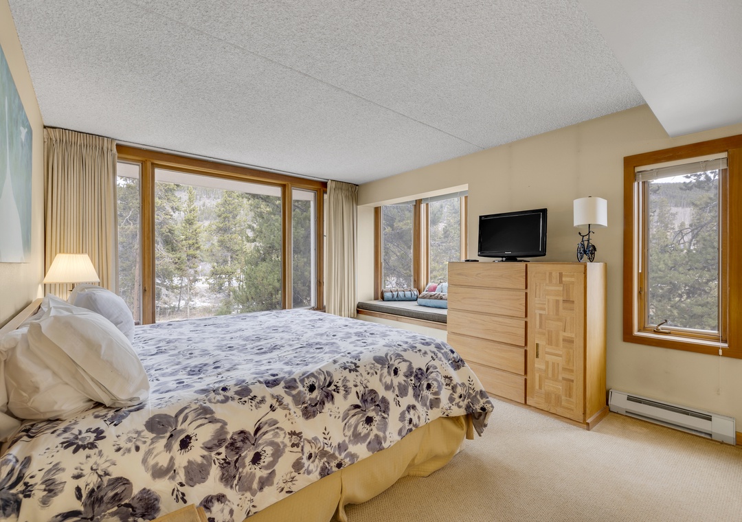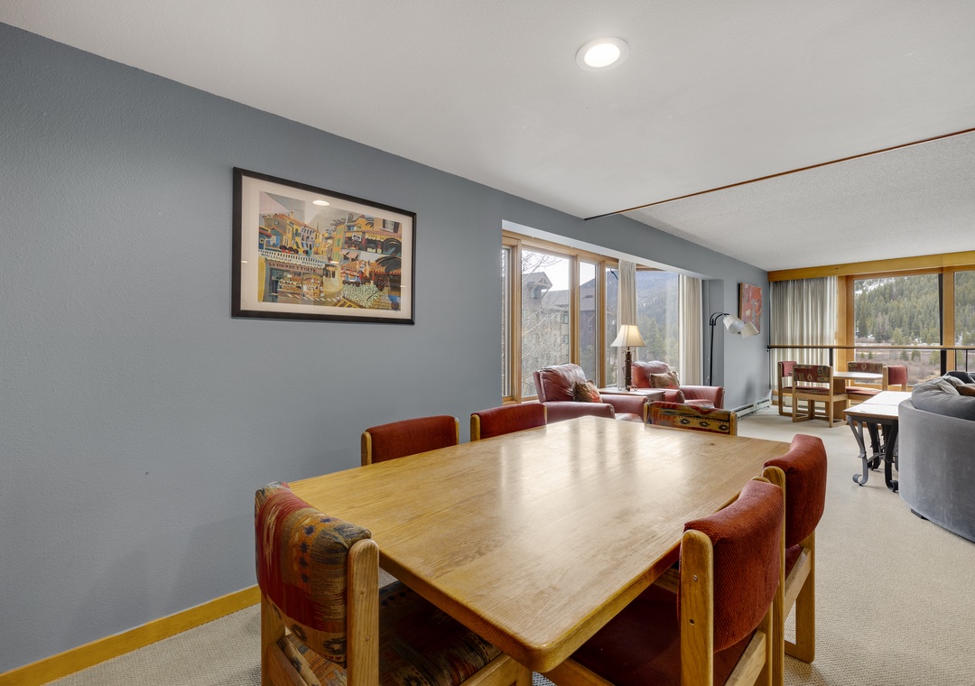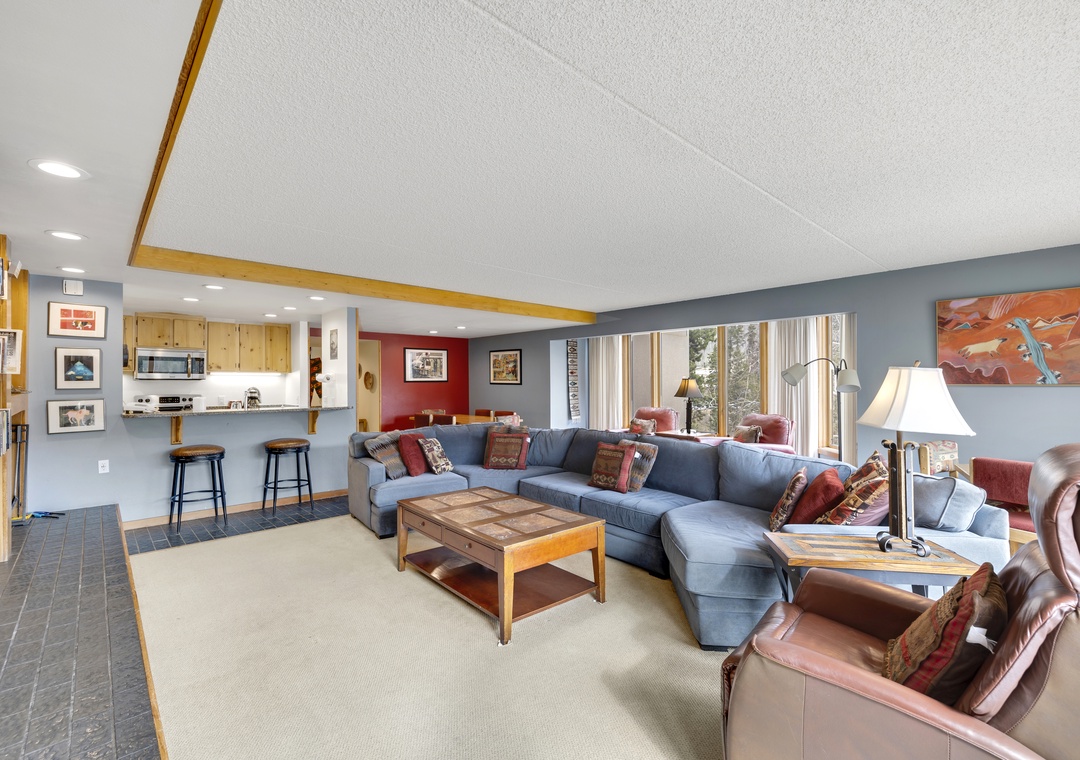 Welcome to our Decatur condo, your ideal Keystone retreat nestled in the heart of Colorado's Rocky Mountains. This charming 4-bedroom, 3-bathroom vacation rental is perfect for families and friends seeking a cozy escape, just steps from the ski lifts. The spacious two-level floor plan offers a blend of rustic charm plus gorgeous views from the large windows highlighted throughout the space.