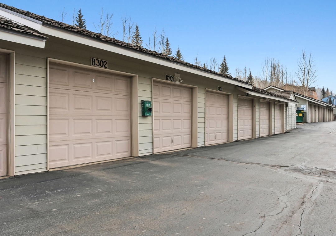 This unit includes two parking spaces. One in a shared covered garage and the other in a surface spot in the complex lot.