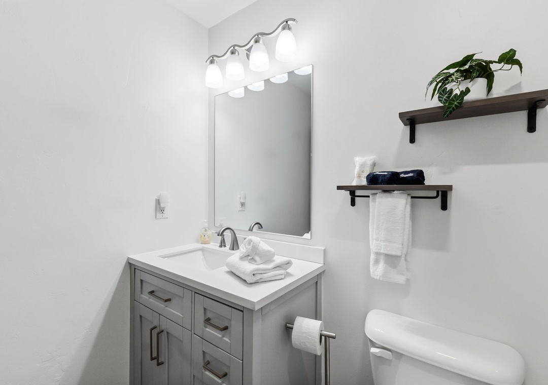 We provide a basic starter pack for guests, including travel-size toiletries, a limited supply of paper products, and laundry/dishwasher detergent. This includes enough to get you through a day or two, depending on personal usage. If you have a longer stay planned, you may wish to bring or purchase more. Additionally, we do not supply coffee, spices, or other kitchen food items.
