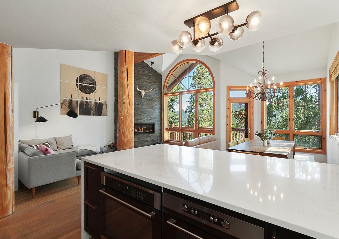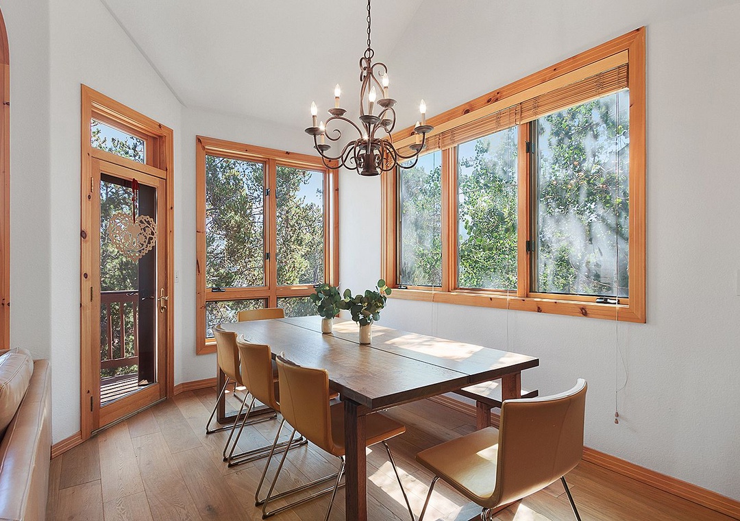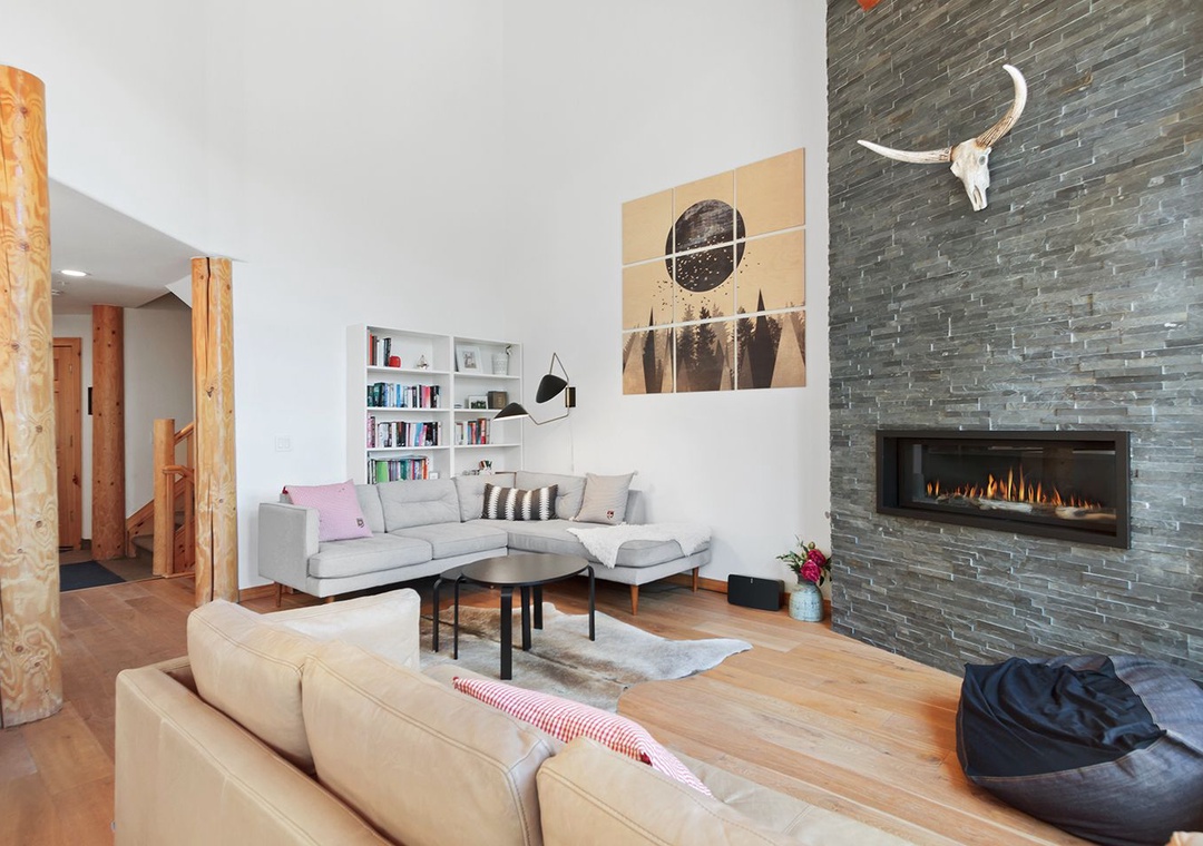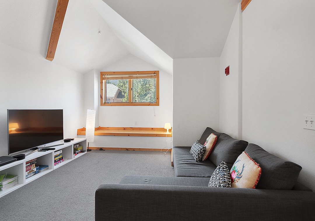 This inviting mountain residence blends Scandinavian simplicity with modern comfort, creating a calm and stylish retreat after a day of adventure. The main living area is intentionally TV-free, offering a serene space to relax, connect, and enjoy the light-filled open layout with cozy furnishings and European-inspired décor. The home’s only TV is located in a dedicated upstairs gathering room, providing a separate space for entertainment without disrupting the peaceful ambiance below. A fully equipped kitchen offers sleek functionality and plenty of space for preparing meals, while large windows fill the home with natural light. Bedrooms are thoughtfully appointed with plush bedding and uncluttered design to promote rest and relaxation throughout your stay.