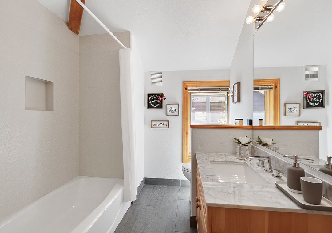 This private home offers convenient parking and a quiet residential atmosphere, creating a peaceful retreat while still being close to area amenities.