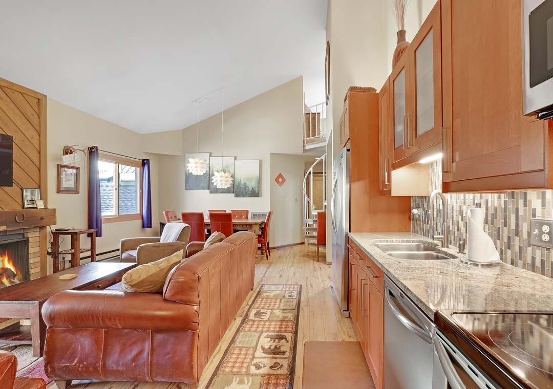 Whether you're preparing a quick breakfast before hitting the slopes or cooking a full dinner for the family, the well-equipped kitchen has everything you need, including modern appliances, cookware, and dining space for all.