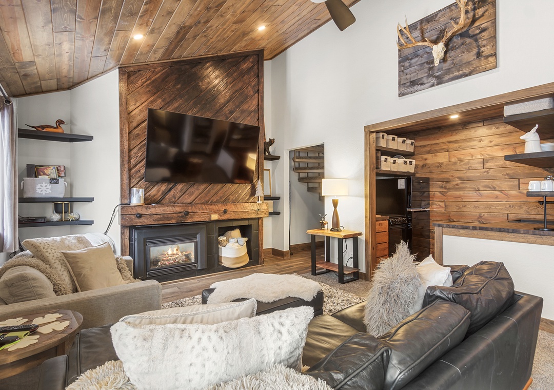 Step inside, and you'll find a thoughtfully designed living space that seamlessly combines comfort and functionality. The main floor features a well-equipped kitchen, complete with modern appliances and everything you need to prepare delicious meals. The living room is a warm and welcoming space, adorned with comfortable furnishings and a fireplace, creating the perfect ambiance for relaxation after a day of outdoor activities.