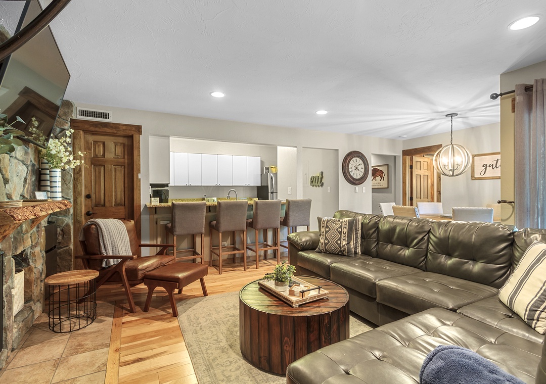 Step inside this cozy unit and be greeted by a warm and inviting atmosphere. The open-concept living area features comfortable furnishings and large windows that showcase stunning views of the surrounding mountains. Relax on the sofa, gather around the fireplace, and create lasting memories with your loved ones.