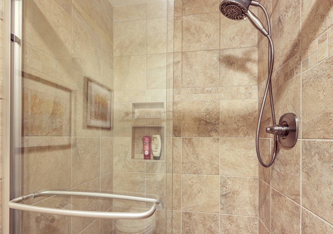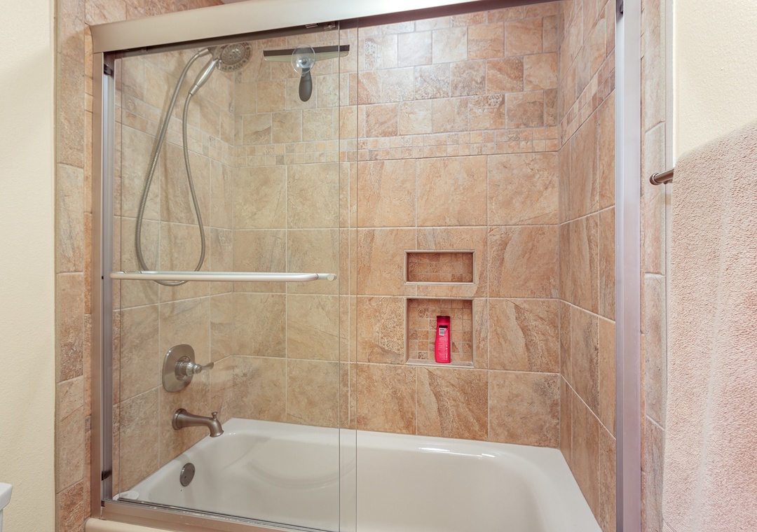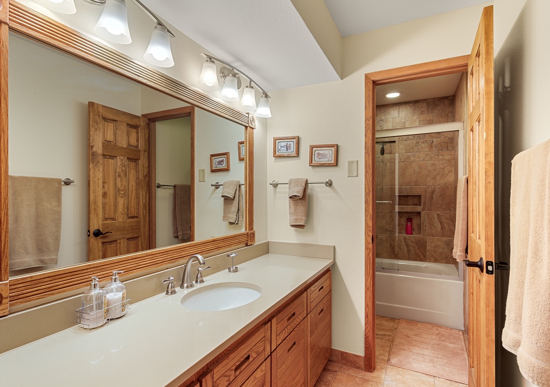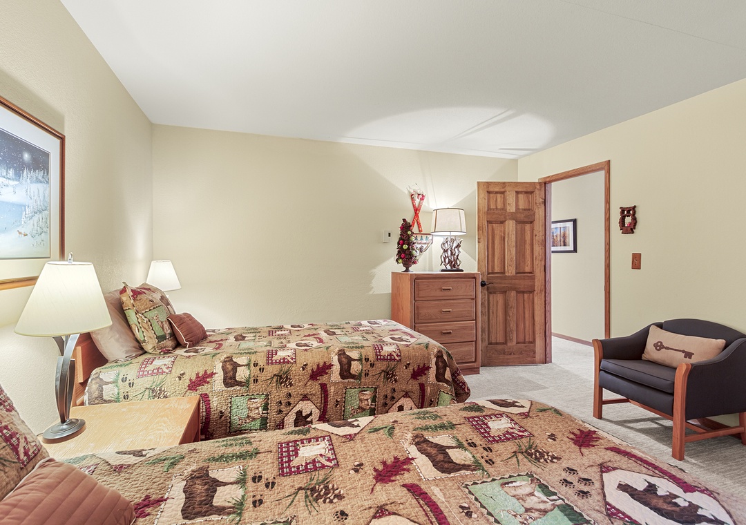 The condo features three well-appointed bedrooms. The primary bedroom has a comfortable king-sized bed, an en-suite bathroom, and a private balcony where you can enjoy the stunning mountain views. The second bedroom has a king-sized bed, while the third bedroom has two twin-sized beds, perfect for kids or friends traveling together.