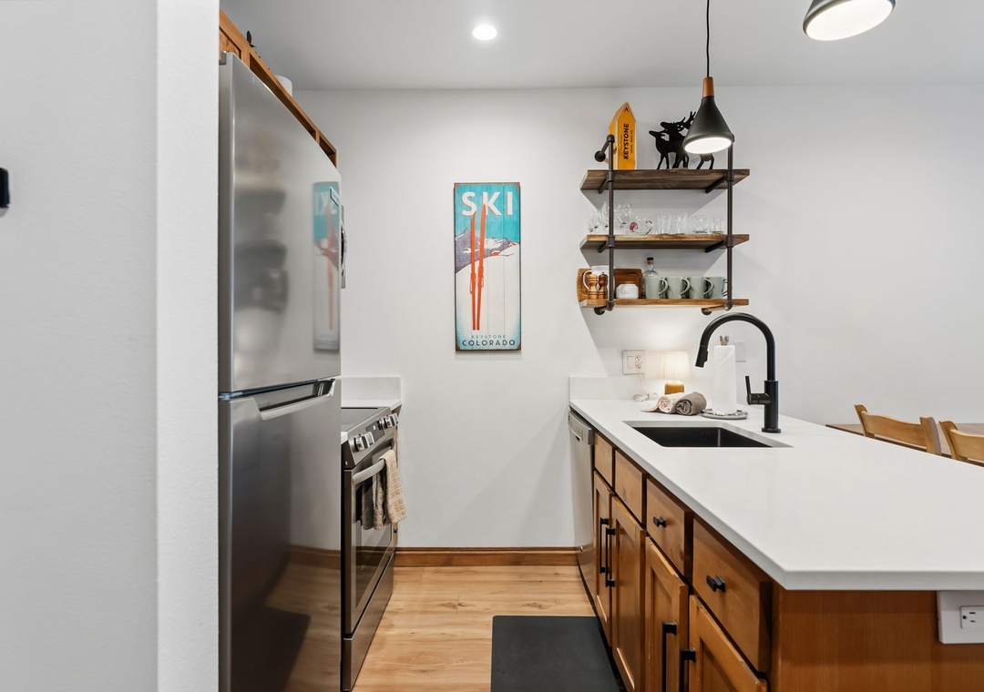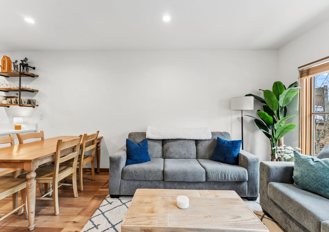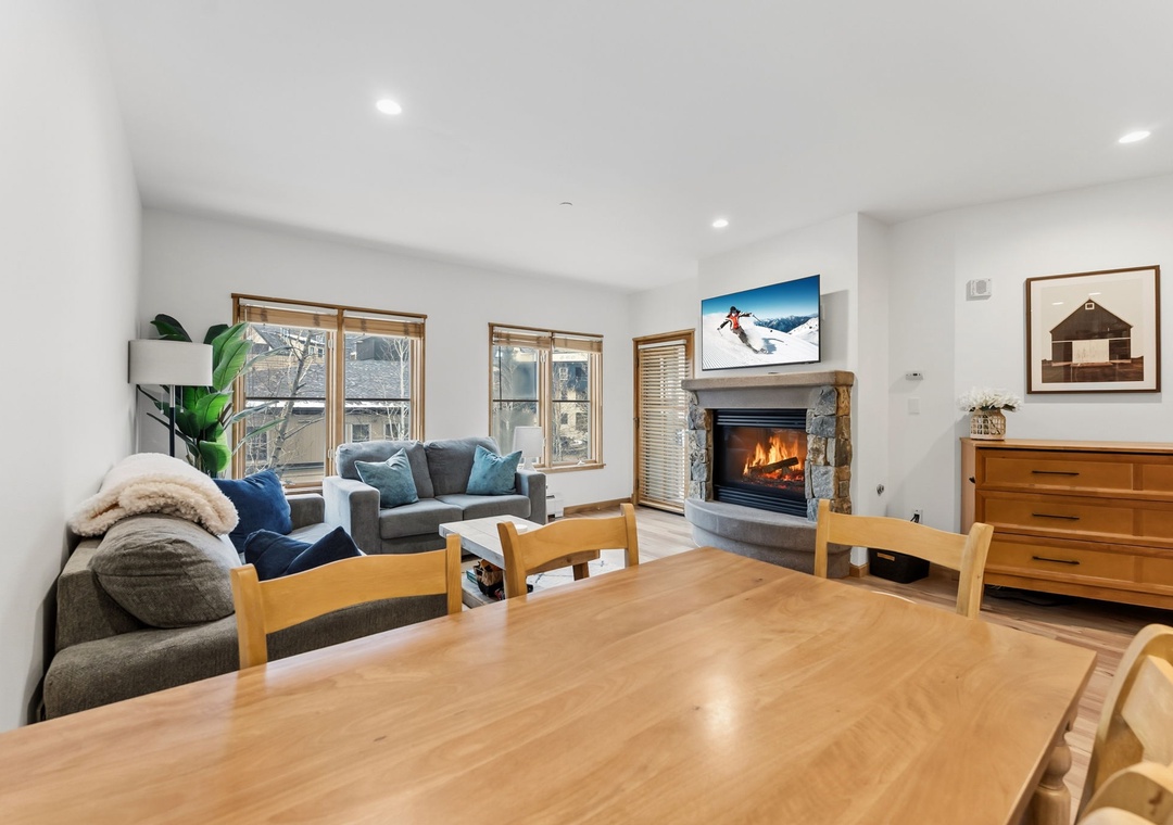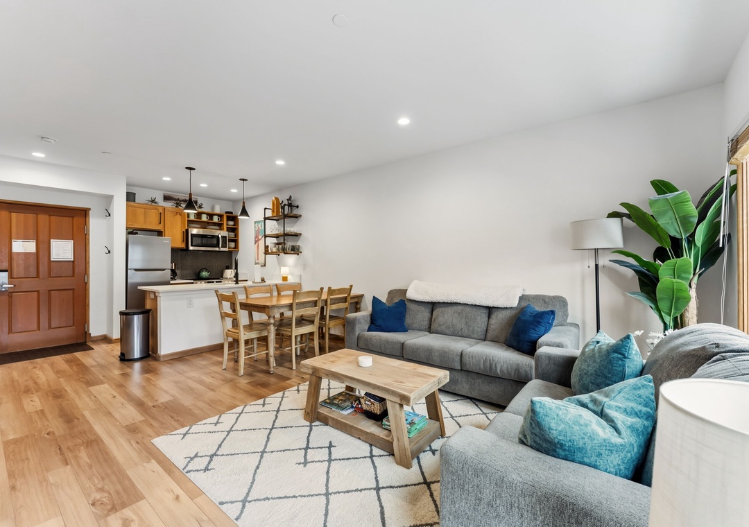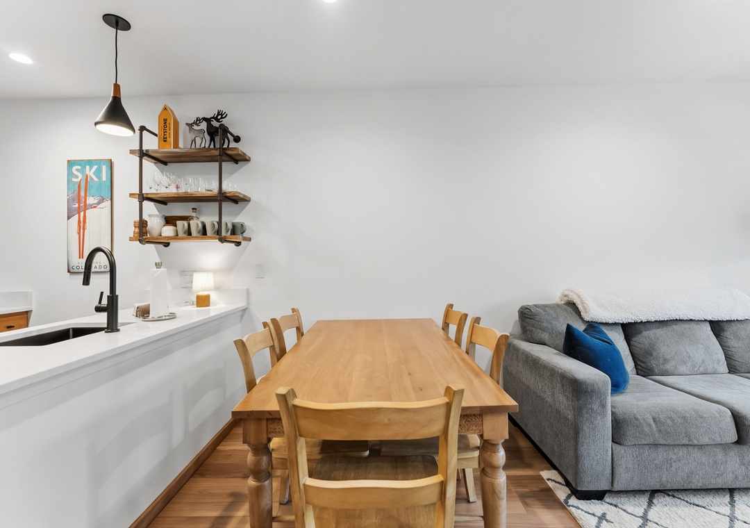 This newly renovated 1-bedroom Keystone condo offers comfortable, stylish accommodations for up to five guests. The private bedroom provides a peaceful retreat, while the living room includes additional sleeping arrangements—ideal for families or small groups. The open-concept layout, gas fireplace, and modern décor create a warm mountain atmosphere perfect for relaxing after a day on the slopes or trails.