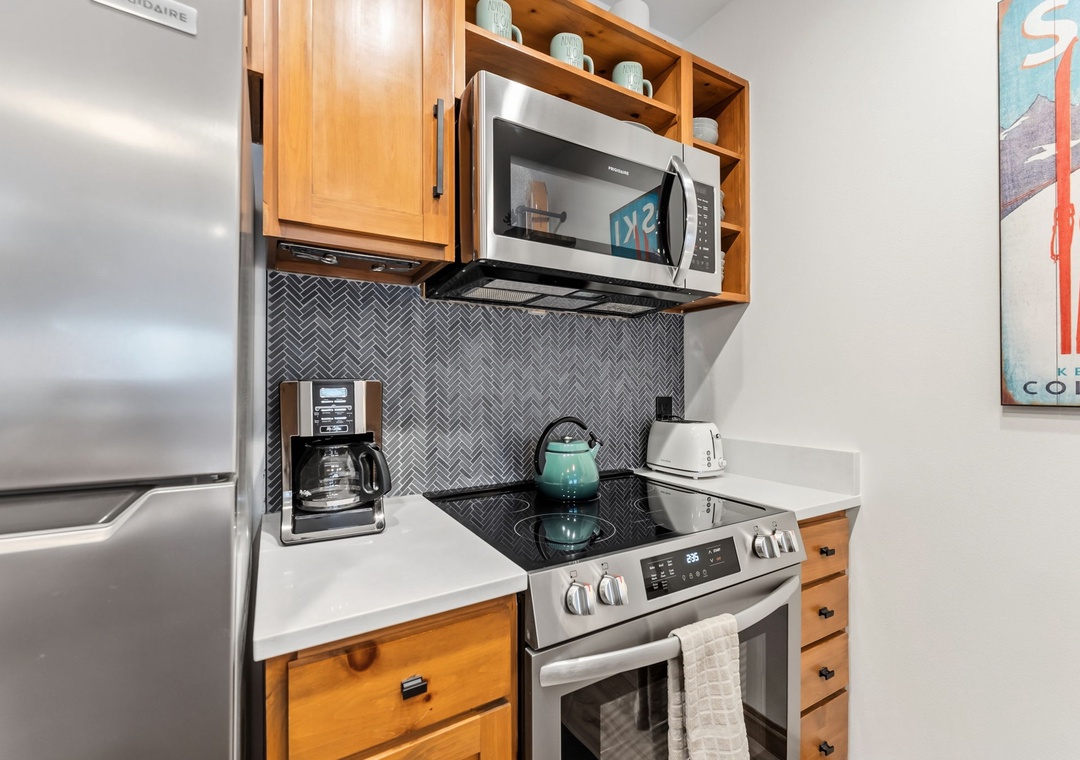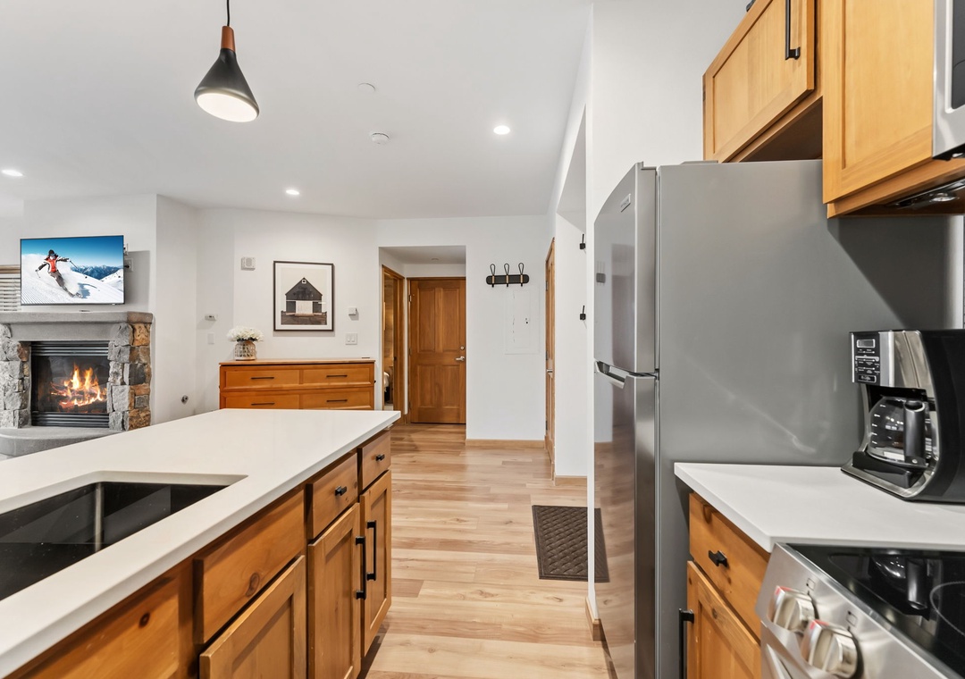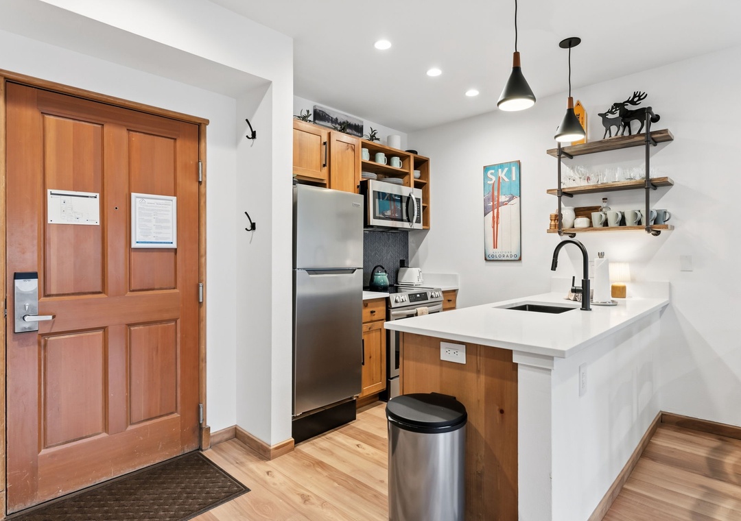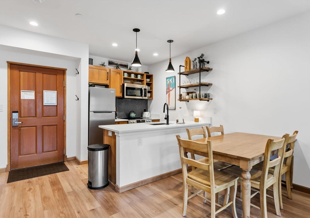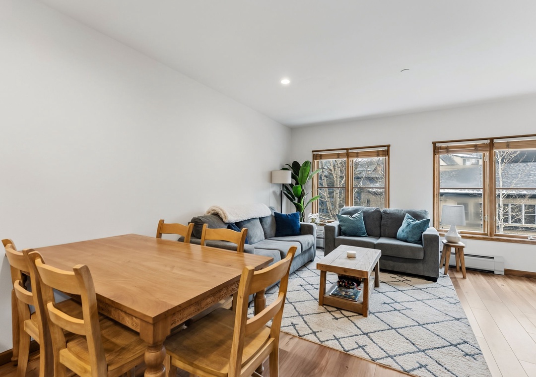 This newly renovated 1-bedroom Keystone condo offers comfortable, stylish accommodations for up to five guests. The private bedroom provides a peaceful retreat, while the living room includes additional sleeping arrangements—ideal for families or small groups. The open-concept layout, gas fireplace, and modern décor create a warm mountain atmosphere perfect for relaxing after a day on the slopes or trails.