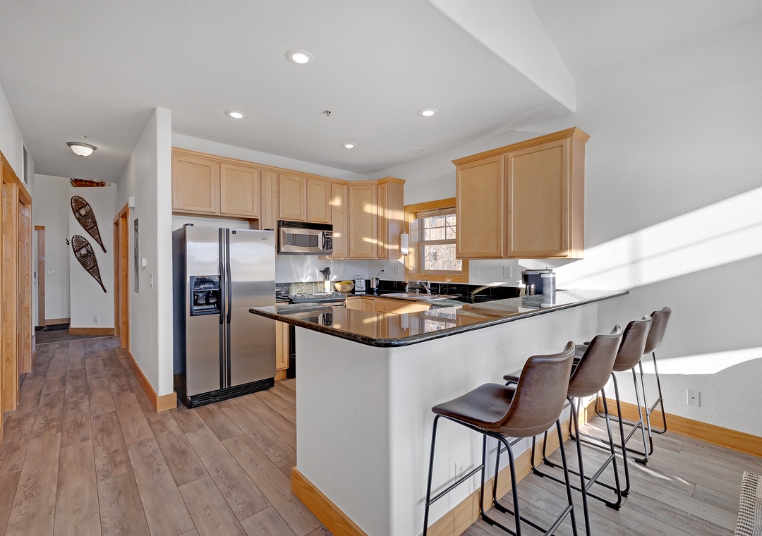 This two-bedroom, two-bathroom condo provides everything you need for a relaxing getaway. The spacious bedrooms feature plush bedding, ample storage, and rustic mountain décor to make you feel right at home. The modern bathrooms come with updated fixtures, fresh linens, and all essentials provided for your convenience.