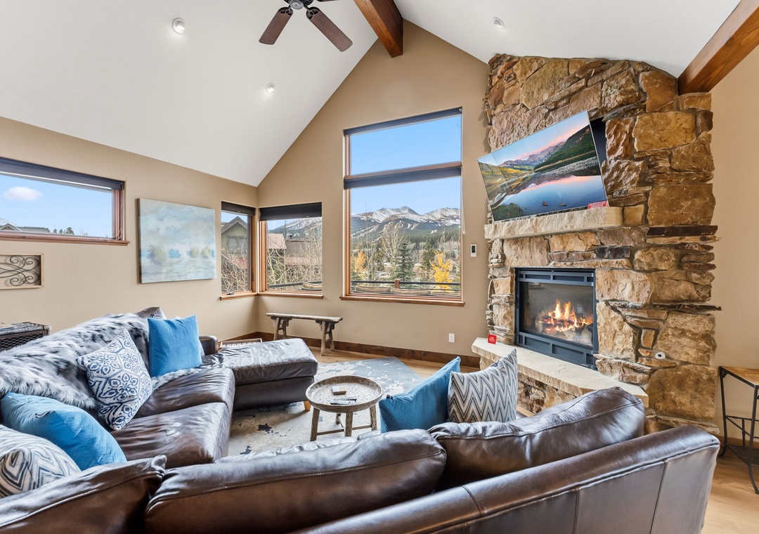 This inviting Breckenridge home offers a warm, mountain-inspired ambiance with a spacious open-concept living area featuring a cozy fireplace and plush seating. The fully equipped kitchen makes cooking a breeze, while modern appliances and in-unit laundry add convenience for extended stays. Guests can enjoy a private outdoor deck with a hot tub, perfect for soaking in panoramic mountain views after a day of skiing or hiking. Thoughtful décor and comfortable furnishings ensure a welcoming retreat for families or friends seeking a memorable mountain getaway.