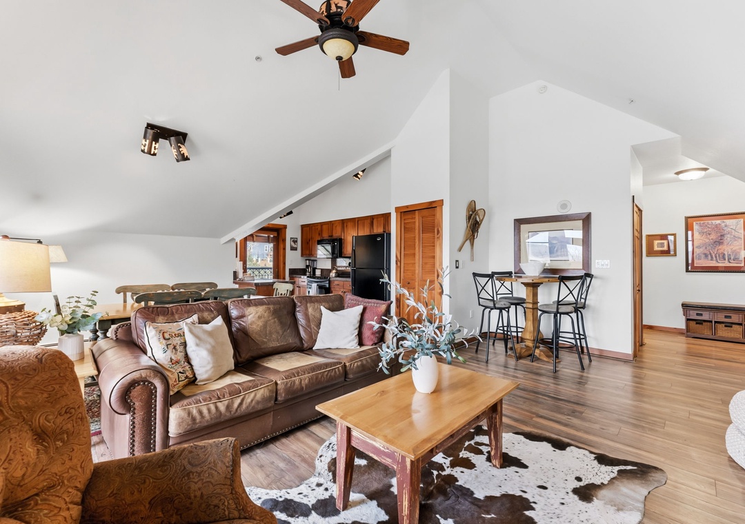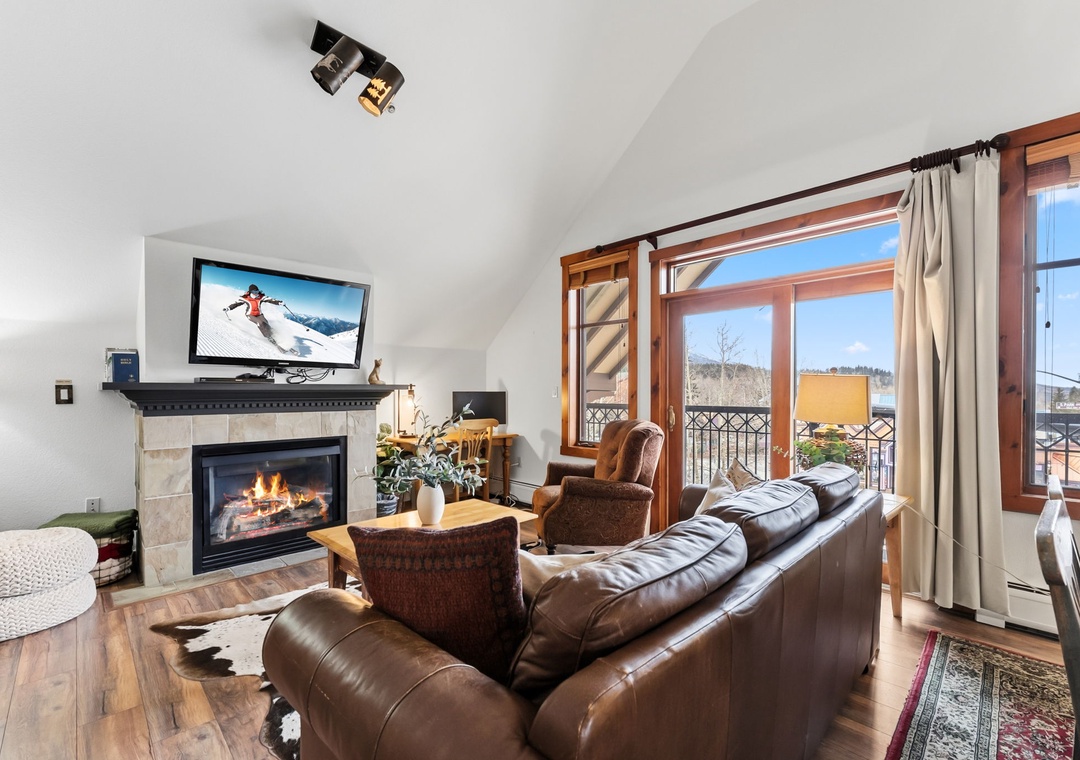 Lodging and Locale This inviting mountain retreat offers an open-concept living area with warm, lodge-style décor and a stone-framed gas fireplace ideal for unwinding after a day on the slopes. The fully equipped kitchen features modern appliances and plenty of counter space for preparing meals together. Large windows bring in natural light and frame beautiful peaks in the distance, while the private balcony provides a peaceful spot for morning coffee or evening stargazing. Guests will appreciate the convenience of in-unit laundry, comfortable furnishings, and thoughtful touches throughout that make this condo feel like a true home base in Breckenridge.