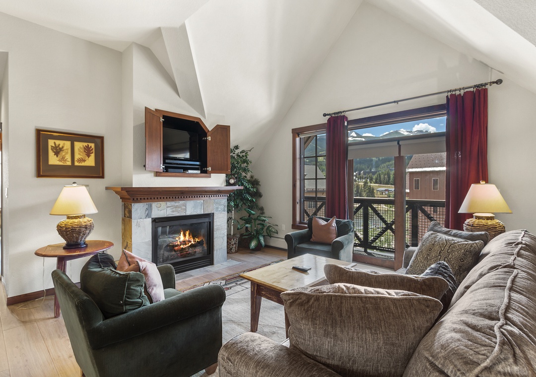 Come and enjoy this two bedroom condo located just 175 yards from the Quicksilver 6-passenger lift and right on historic Main Street. Recently upgraded flooring throughout! Great views are offered from your own private balcony overlooking all the action in the courtyard below. This condo also features an open floor plan with granite-tiled countertops, comfortable mountain furnishings and a gas fireplace. In addition, the master bath features a double vanity, a wonderful soaking tub and stand-up shower. Check out the on-site amenities that include indoor/outdoor hot tubs, an outdoor heated pool, free ski check, secured underground heated parking for one vehicle, elevator access, sauna, and exercise room with state-of-the-art equipment.