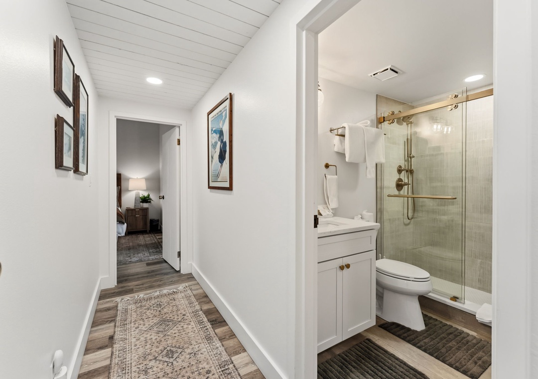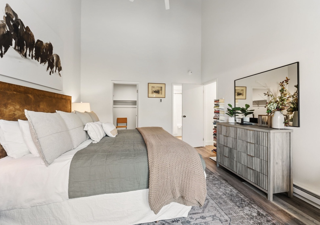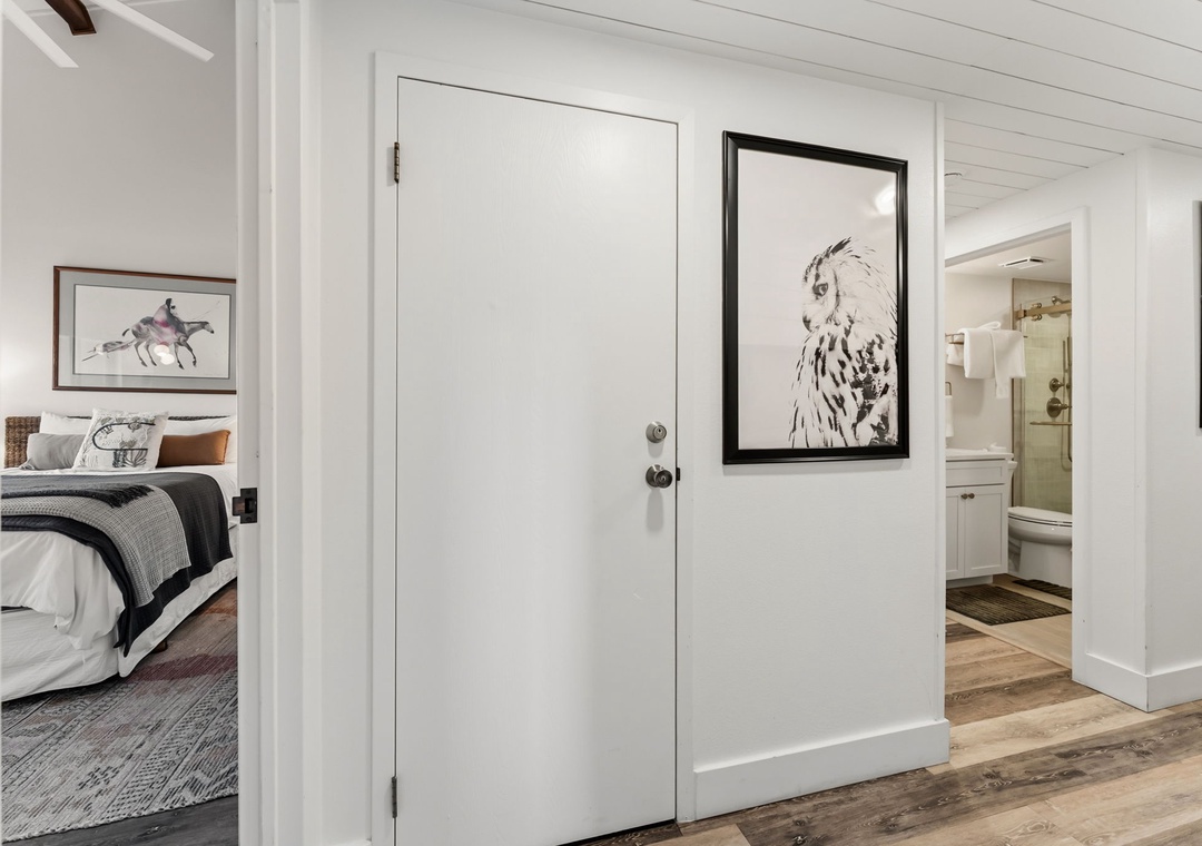 As you step into the condo, you'll find a spacious hall with ample hooks and shelves, perfect for storing your gear after a day on the slopes. The master bedroom features a luxurious king-sized bed with a new mattress (2021), premium linens (2022), and a full desk setup (2022) for those who need to catch up on work. The large walk-in closet provides plenty of space for your belongings, and the attached bathroom offers a deep soaking tub in the newly remodeled bathroom, perfect for unwinding after an active day.