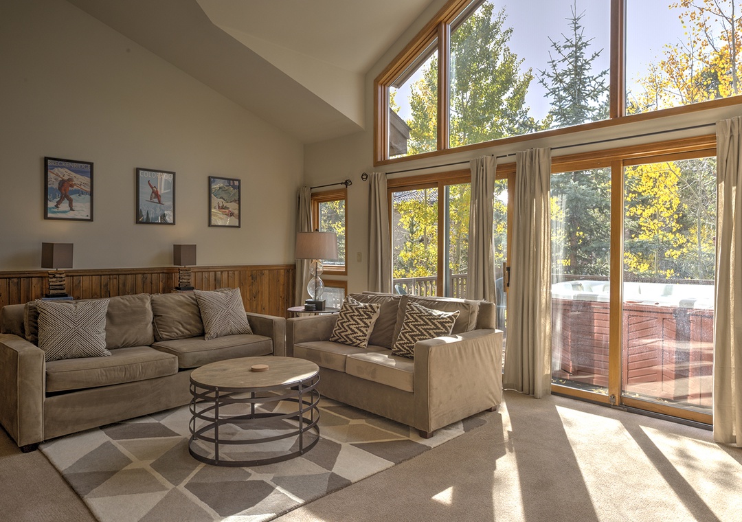 This is a beautiful three bedroom townhome, located just 200 yards from the Quicksilver Chairlift and one block walk to historic Main Street. Take some time and relax on your private deck featuring your own private hot tub and beautiful south-facing views. This townhome features beautiful furnishings, spacious vaulted floorplan, washer/dryer, complimentary Wi-Fi, gas fireplace and a garage. Guest will also have access to the Upper Village outdoor heated pool located behind the complex.