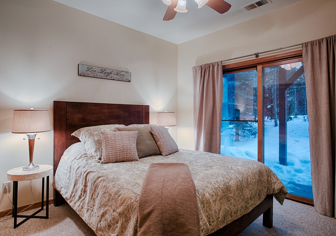 This is a beautiful three bedroom townhome, located just 200 yards from the Quicksilver Chairlift and one block walk to historic Main Street. Take some time and relax on your large private deck featuring beautiful south-facing views and propane grill. This townhome features brand new furnishings, spacious vaulted floorplan, full sized washer/dryer, complimentary Wi-Fi, gas fireplace and a one-car garage. Guest will also have access to the Upper Village outdoor heated pool located behind the complex.