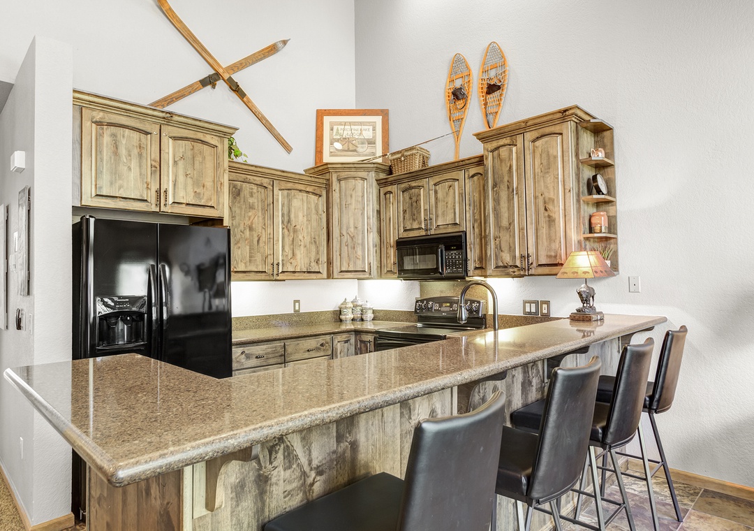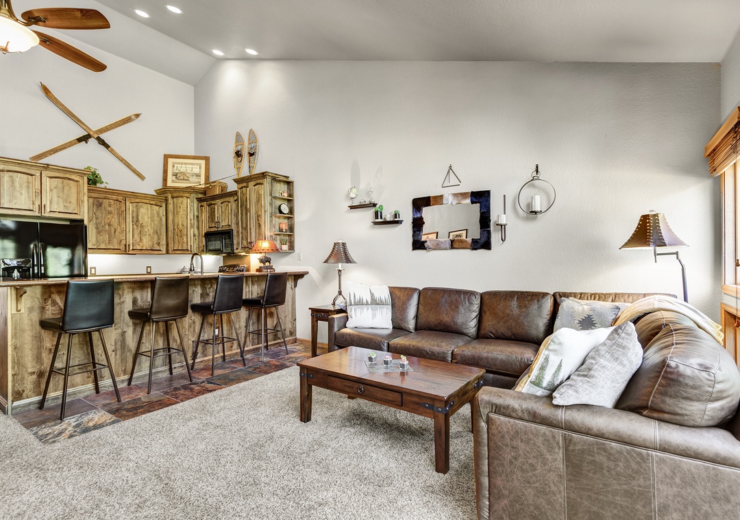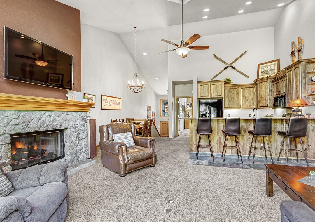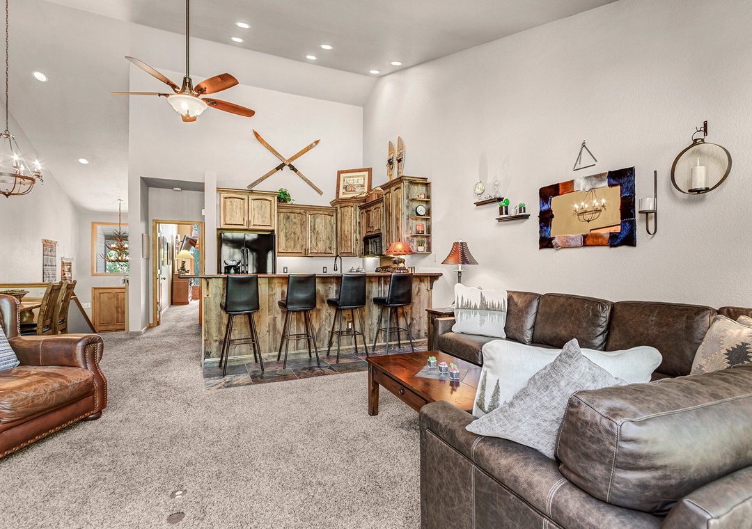 This beautiful three bedroom townhome has just been remodeled and is located across the street from both the chairlift and Main Street. Featuring new furniture and decor in the living room as of the Summer of 2018, along with contemporary mountain furnishings and a spacious floorplan with vaulted living area, this townhome is one of our more popular choices for larger families. The kitchen features beautiful new cabinets and granite countertops. Guests thoroughly enjoy the 55" LED television in the living area, complete with Comcast's high-definition programming package. The master bedroom also features USB ports on both sides of the bed for easy charging, a vaulted ceiling, and the master bath features double vanities along with a tub and standup shower. Other highlights include a brand new private hot tub, televisions in each bedroom, complimentary WiFi, washer/dryer, and garage parking. The Upper Village Pool area is adjacent to One Breckenridge Place and features an outdoor heated pool and indoor/outdoor hot tubs.